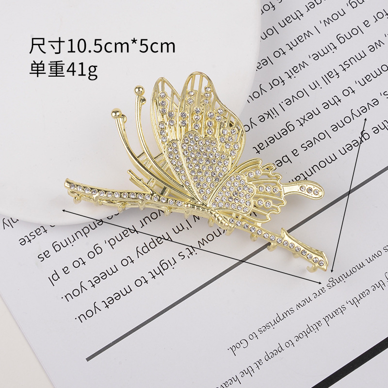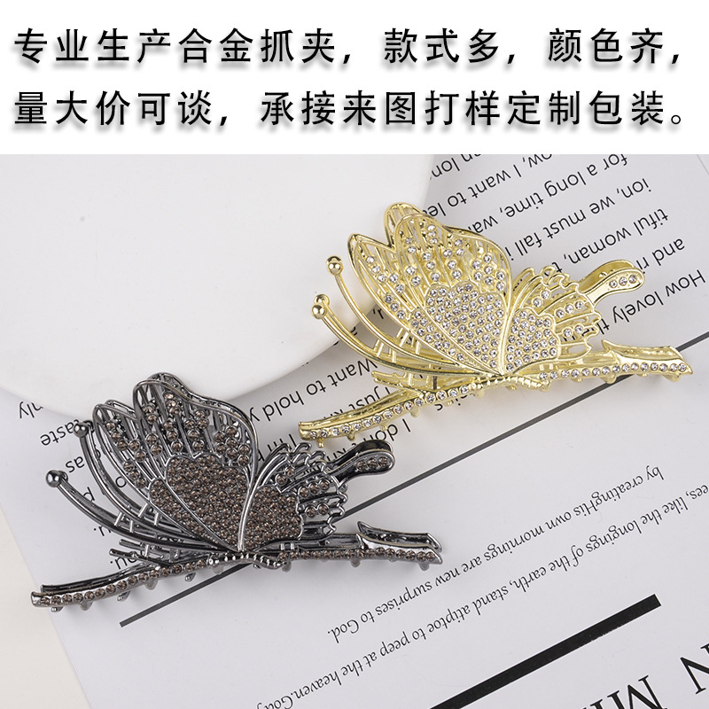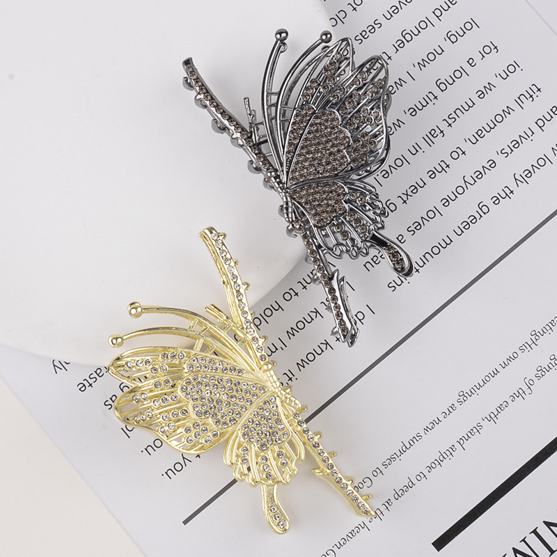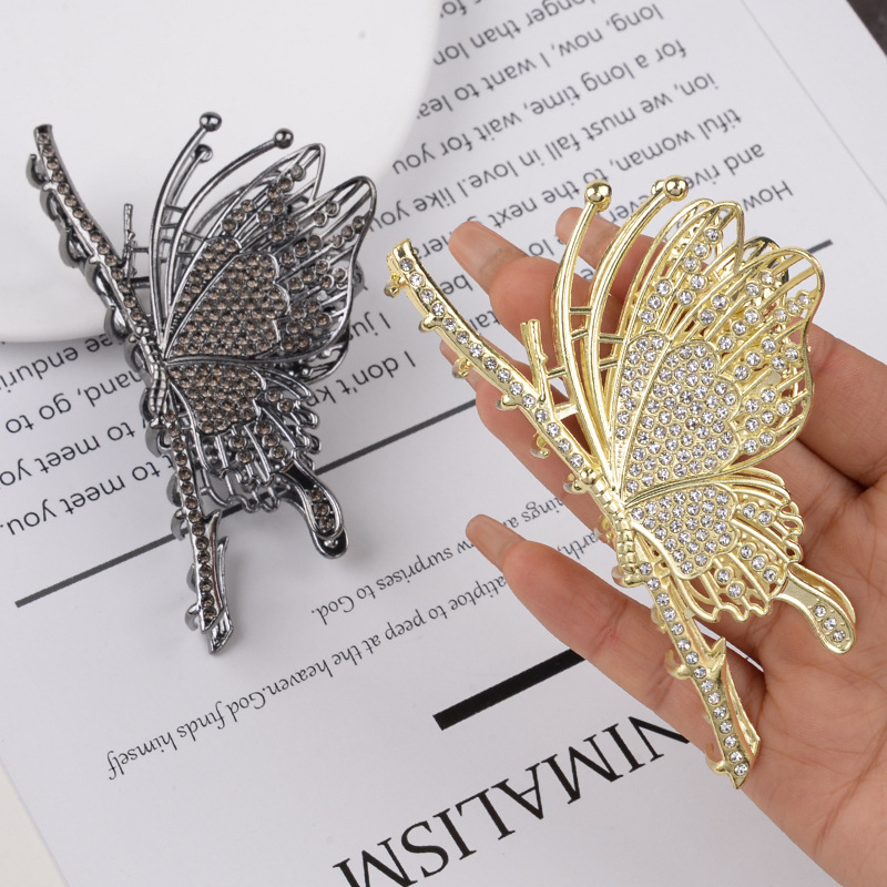 하이 엔드 중공 다이아몬드 박힌 나비 잡아 클립 예술적 레트로 백 헤드 상어 클립 금속 국가 패션 새로운 중국 헤어 액세서리스토어 가기