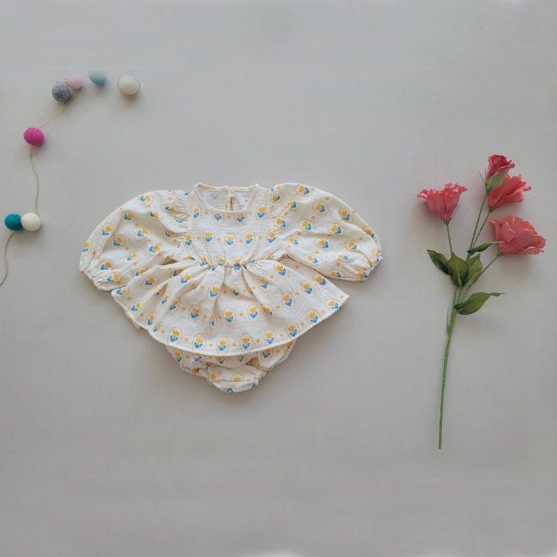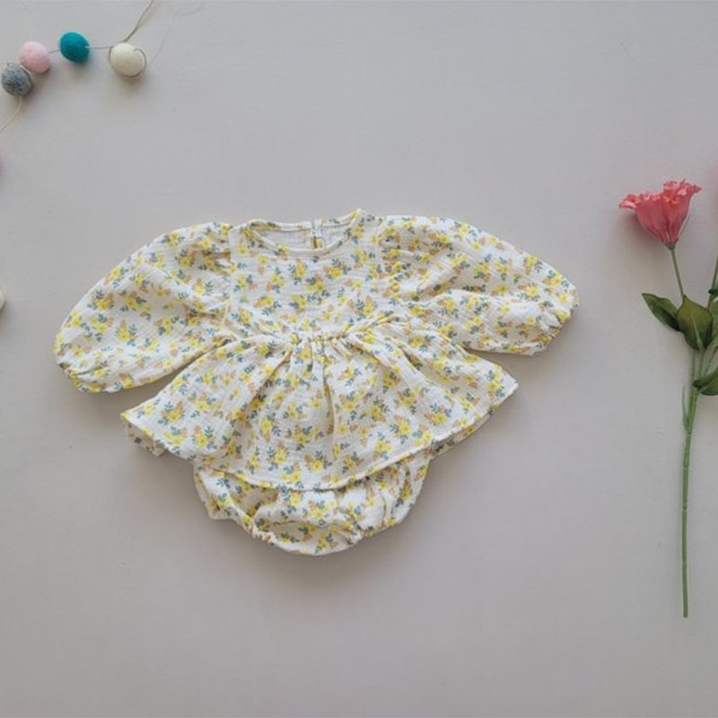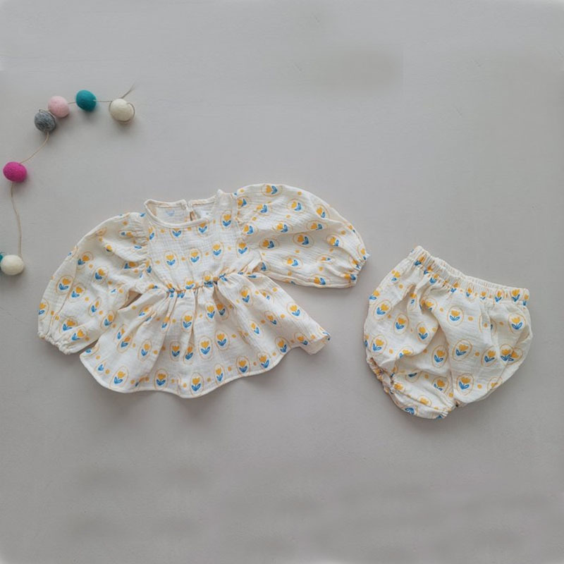 아기의 여름 아기의 세트 부드럽고 달콤한 꽃 인형 셔츠 큰 Pp 반바지 투피스 세트 한국식 아동복스토어 가기