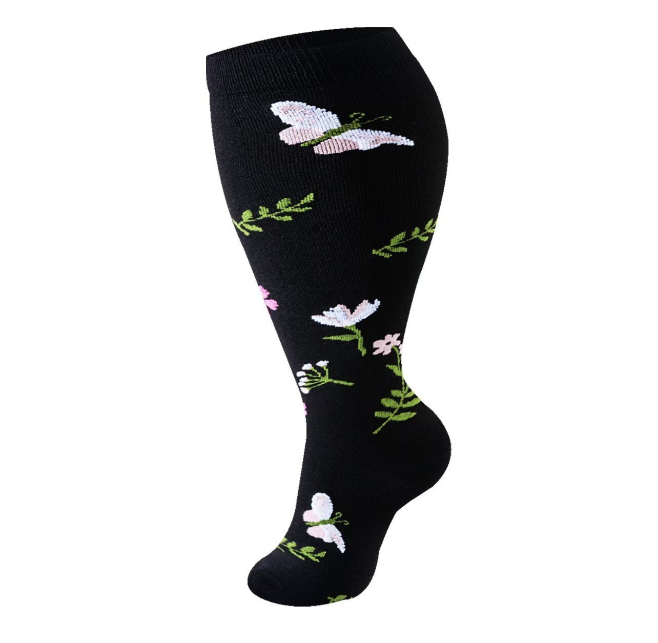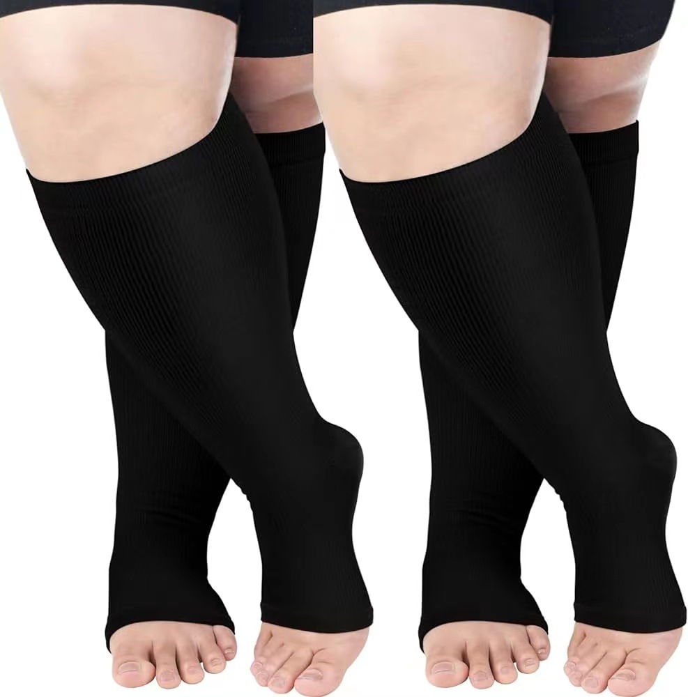 엄선된 크로스보더 플러스 사이즈 오픈토 뚱뚱한 양말 남녀공용 단색 압력 순차 양말 나일론 고탄성 양말
