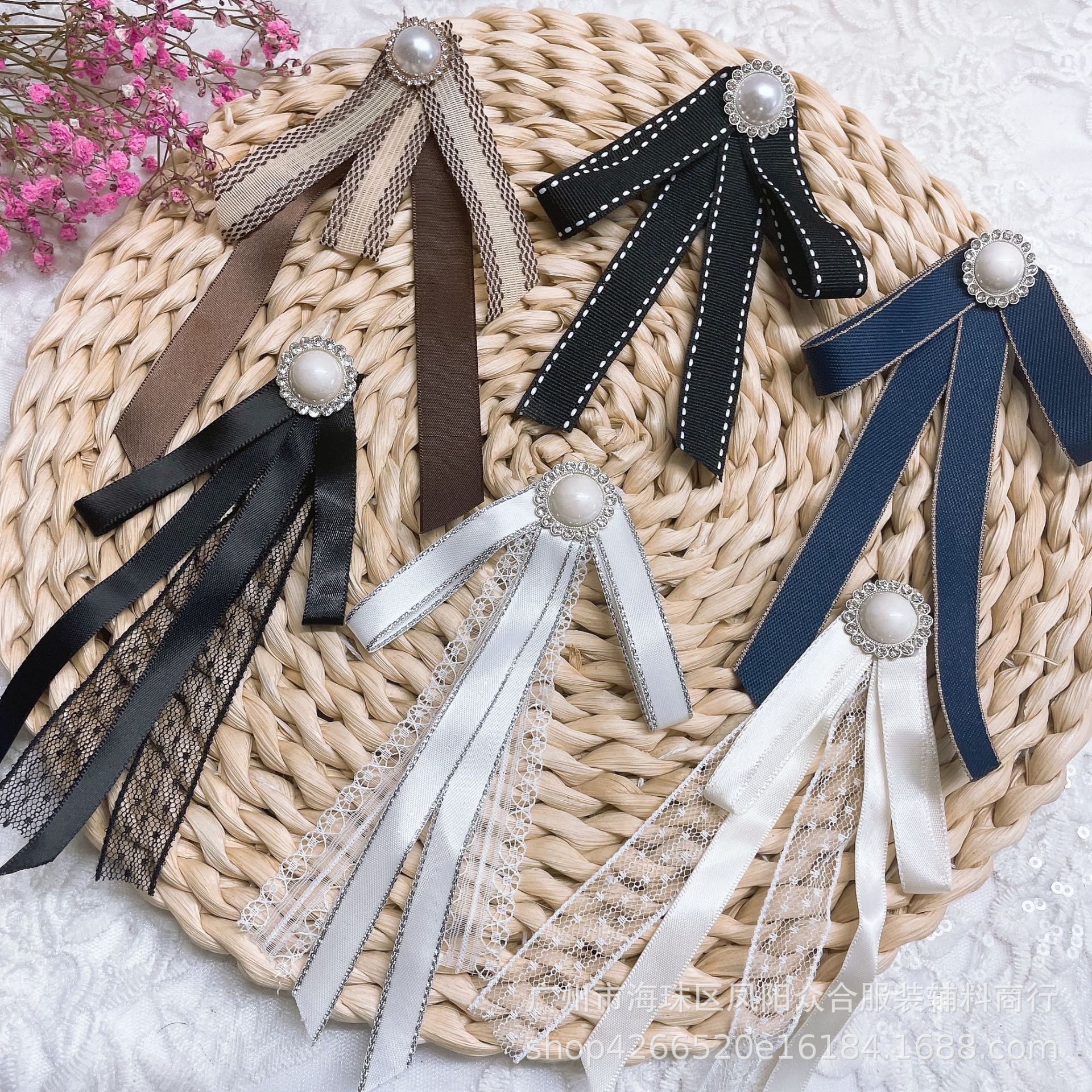 한국식 샤넬 진주 나비 넥타이 리본 레이스 칼라 꽃 활 브로치 학생 셔츠 JK 보석 액세서리