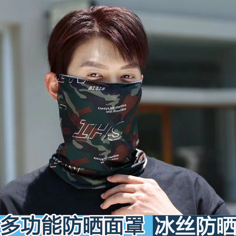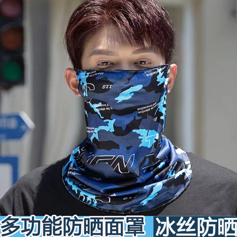 자외선 차단제 마스크 남성용 얼굴 커버링 아이스 실크 스카프 마스크 여름 귀걸이 베일 라이딩 페이스 타올 목 보호 얼굴 커버