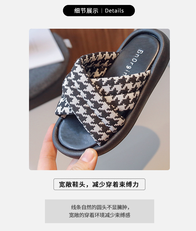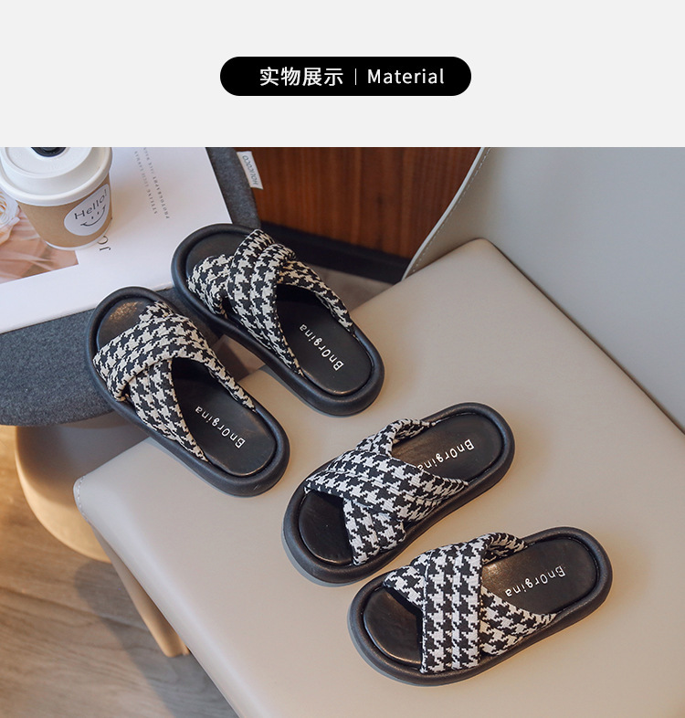 어린이용 외출용 슬리퍼 2024년 여름 신상 크로스 하운드투스 패턴 한국 스타일 패션 캐주얼 여아용 슬리퍼스토어 가기