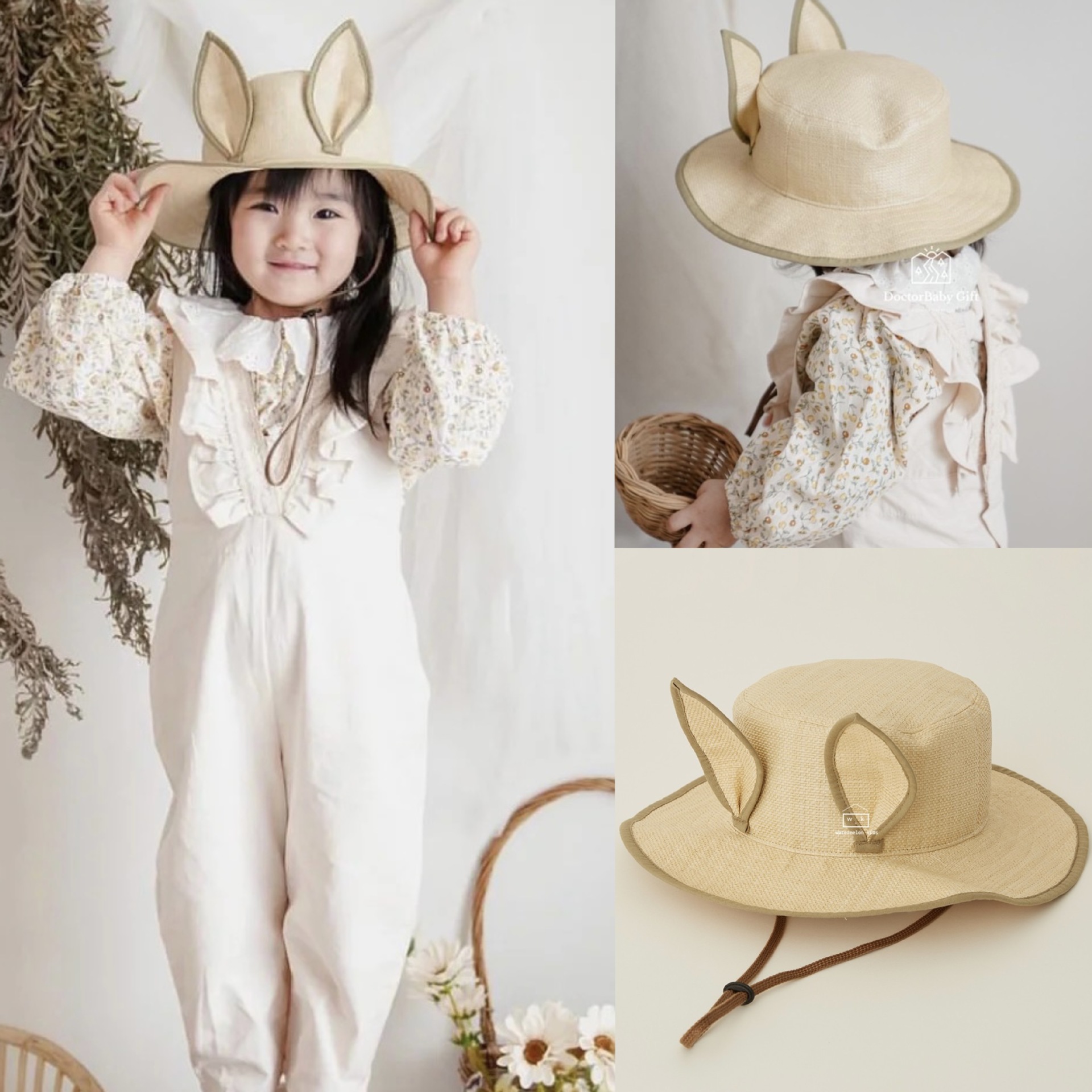 아기와 어린이를 위한 동일한 스타일의 밀짚모자, 태양모자, 어부모자, 귀여운 태양모자, 챙이 큰 수제모자