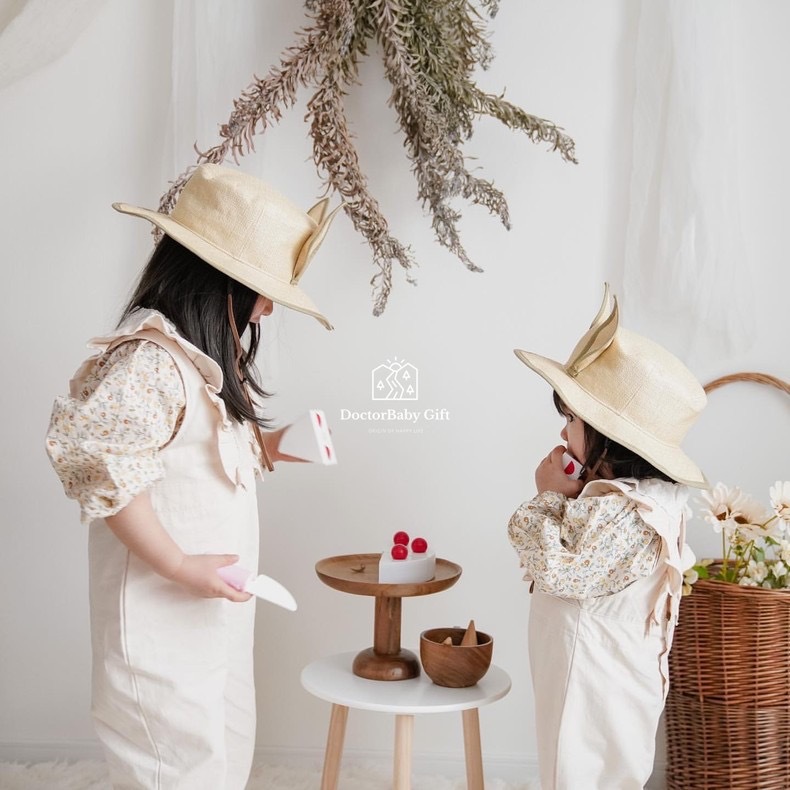 아기와 어린이를 위한 동일한 스타일의 밀짚모자, 태양모자, 어부모자, 귀여운 태양모자, 챙이 큰 수제모자스토어 가기