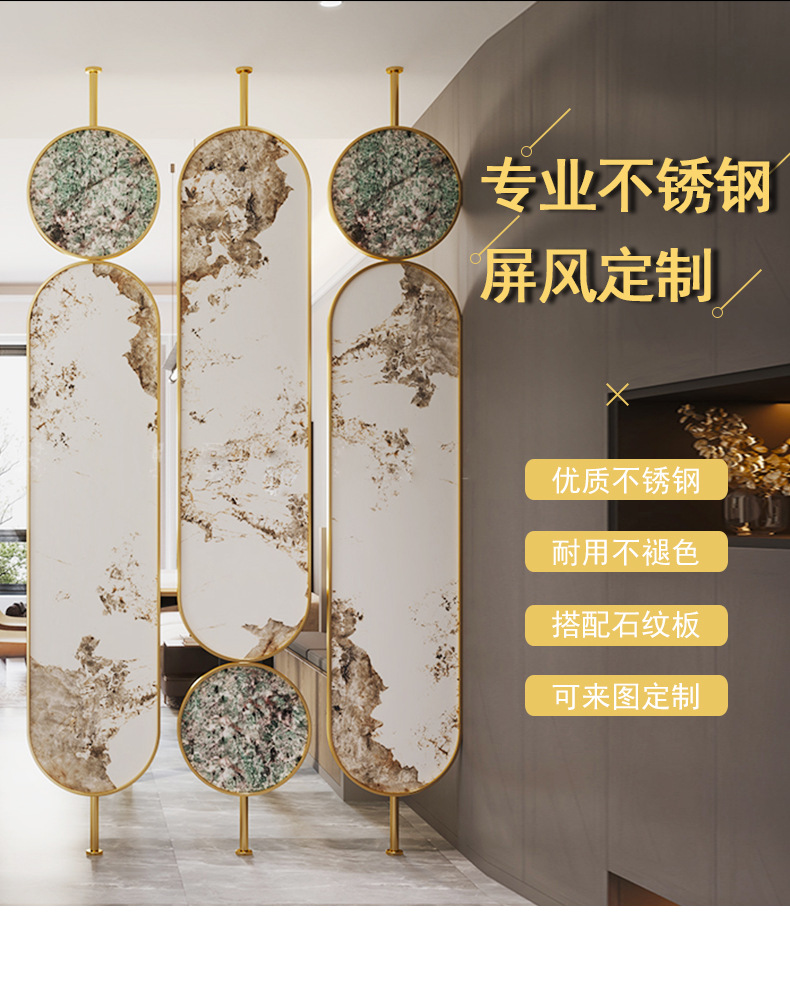 스테인레스 스틸 라이트 럭셔리 스크린 현대 방 대피소 장식 벽 금속 거실 입구 예술적 창조적 인 파티션스토어 가기