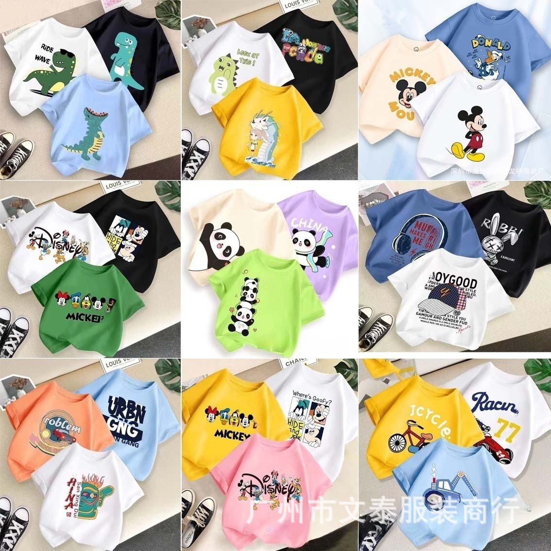 2025 새로운 여름 스타일 소년과 소녀 의류 라운드 넥 반팔 어린이 티셔츠 1688 대외 무역 1-3 위안 무료 배송 의류 도매