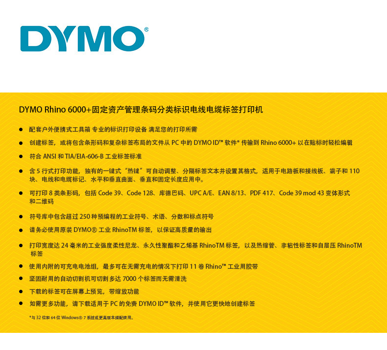 DYMO 델타 라벨 기계 Rhino 6000 + 휴대용 케이블 고정 자산 관리 식별 프린터