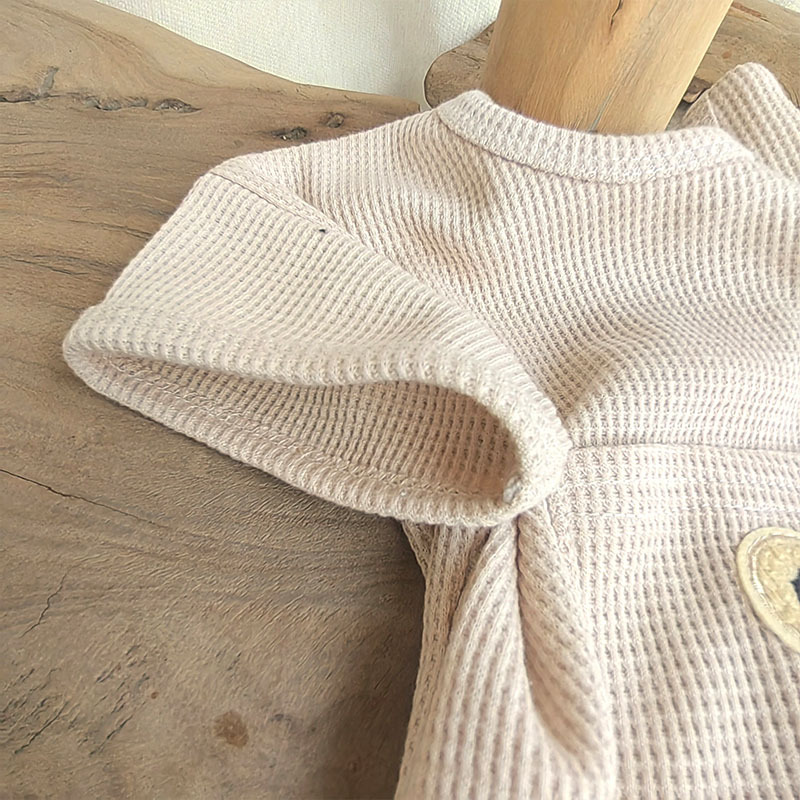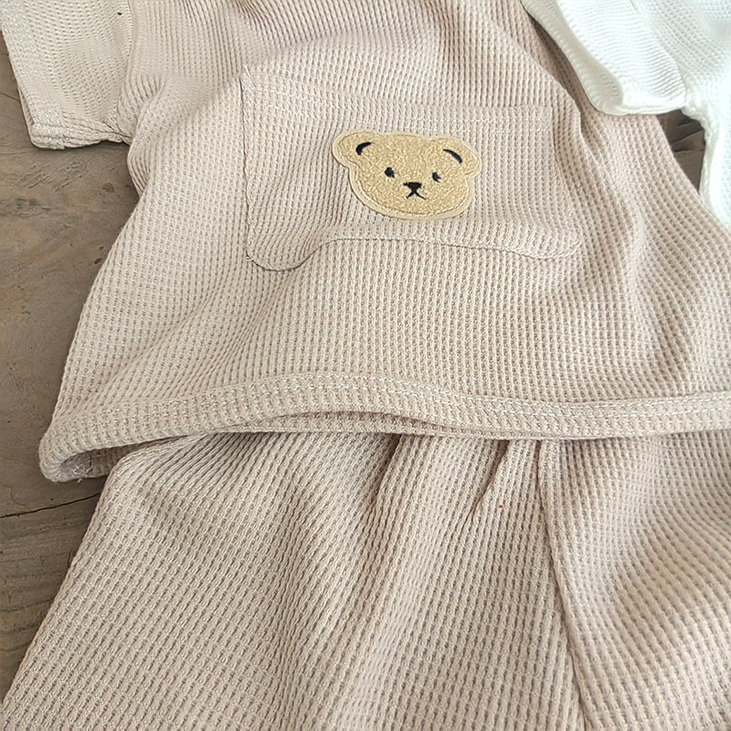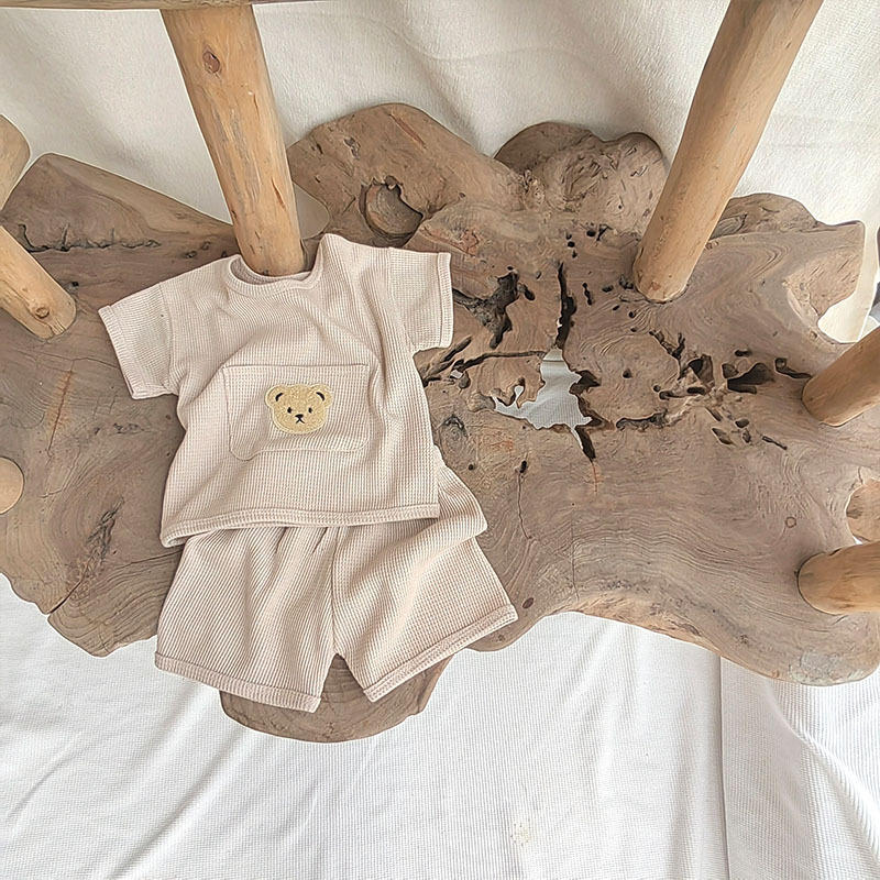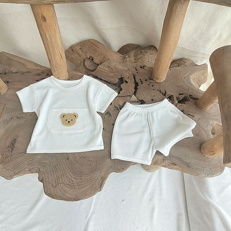 한국식 인 여름 와플 아기 세트 곰 만화 아기 반팔 귀여운 스포츠 투피스 세트