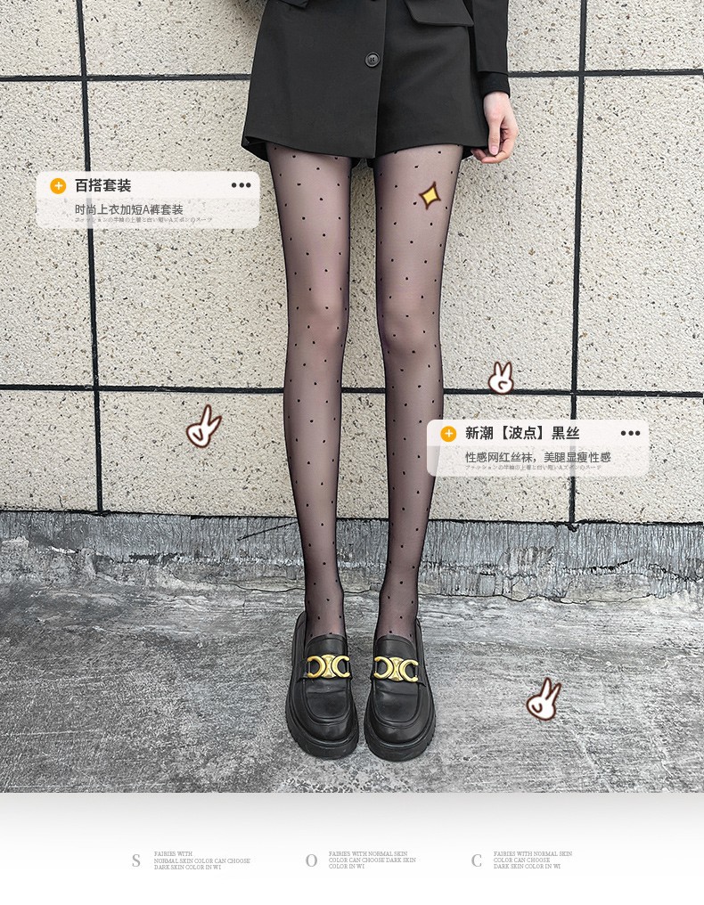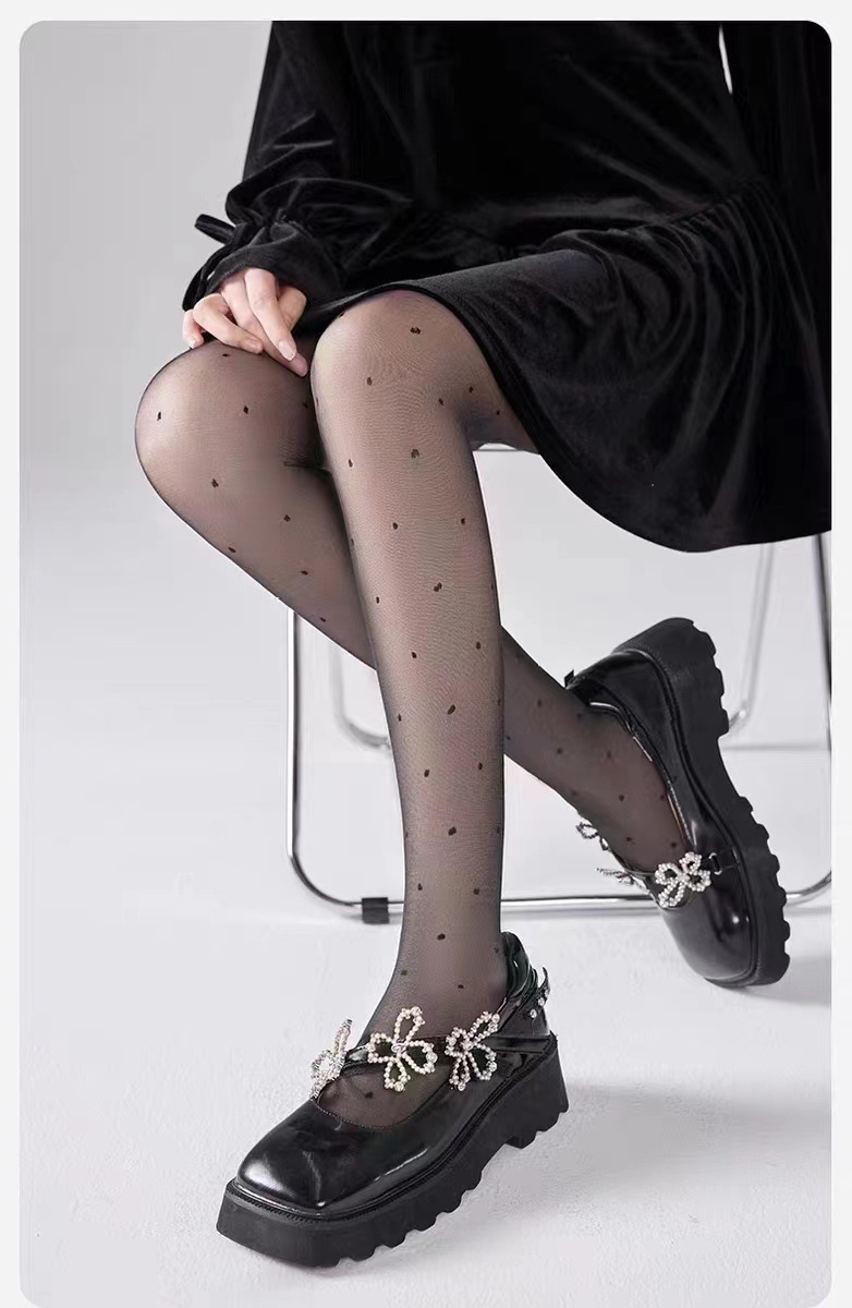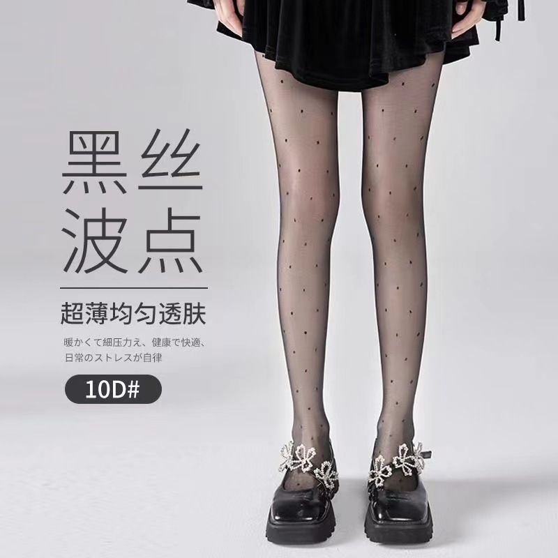 폴카 도트 실크 스타킹 안티 후크 일본 로리타 인쇄 사랑 나비 바지 슬림 봐 섹시한 JK 블랙 실크 얇은