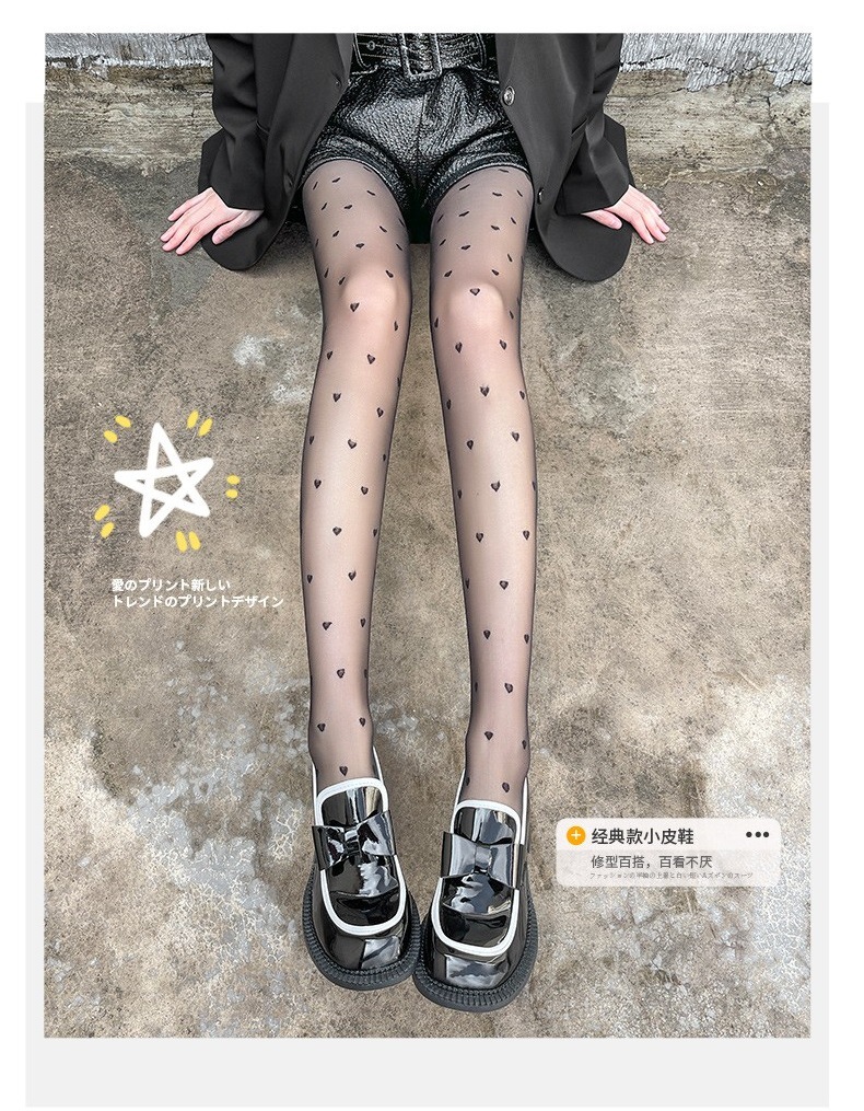 폴카 도트 실크 스타킹 안티 후크 일본 로리타 인쇄 사랑 나비 바지 슬림 봐 섹시한 JK 블랙 실크 얇은스토어 가기