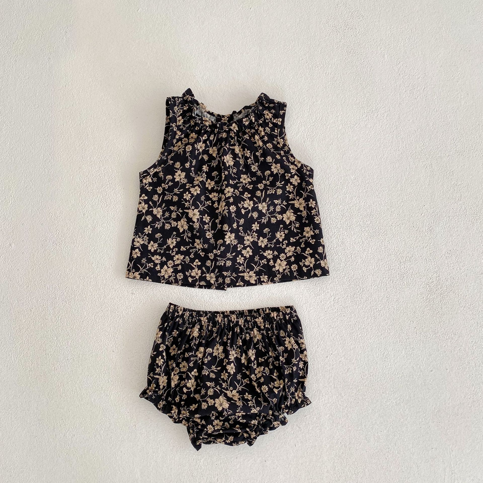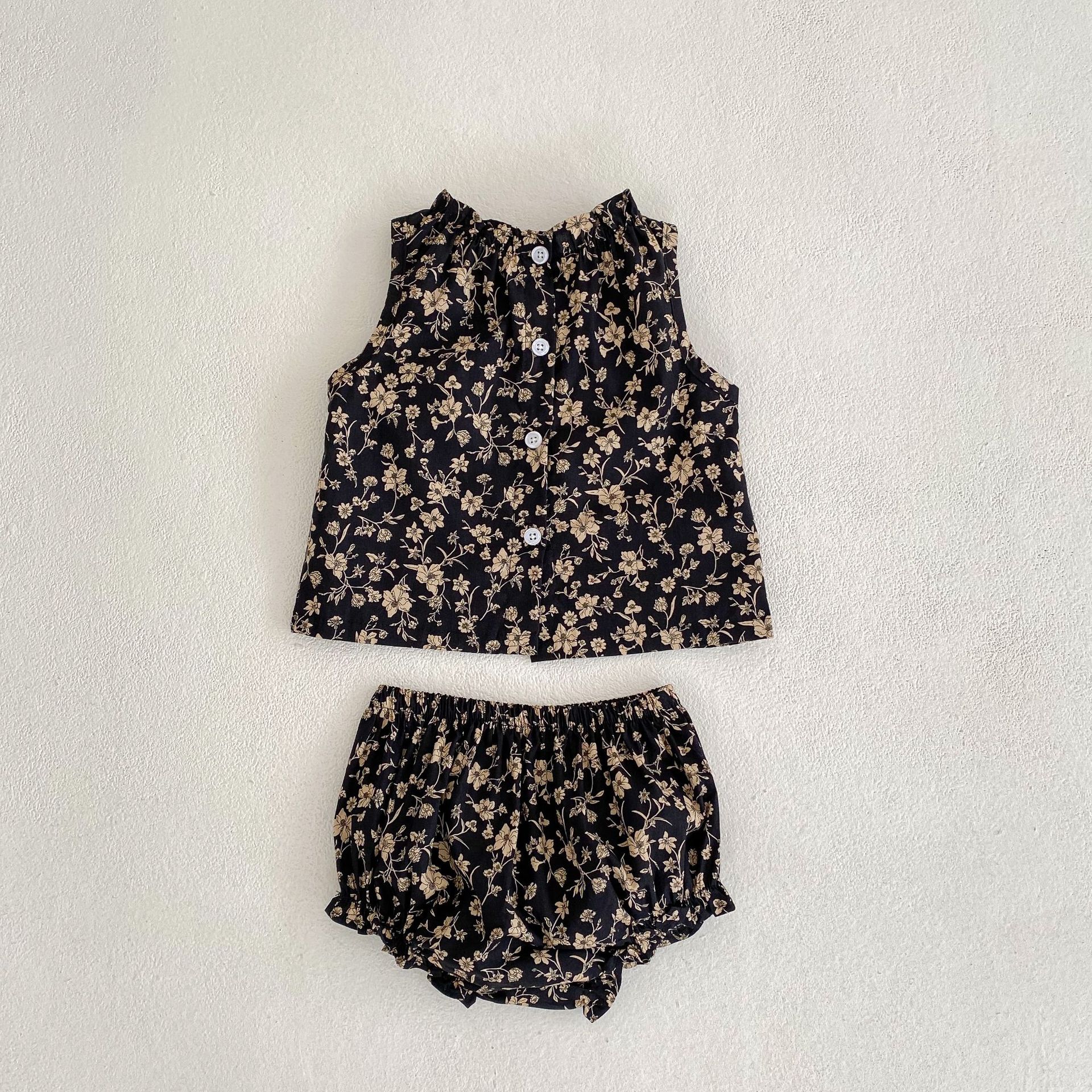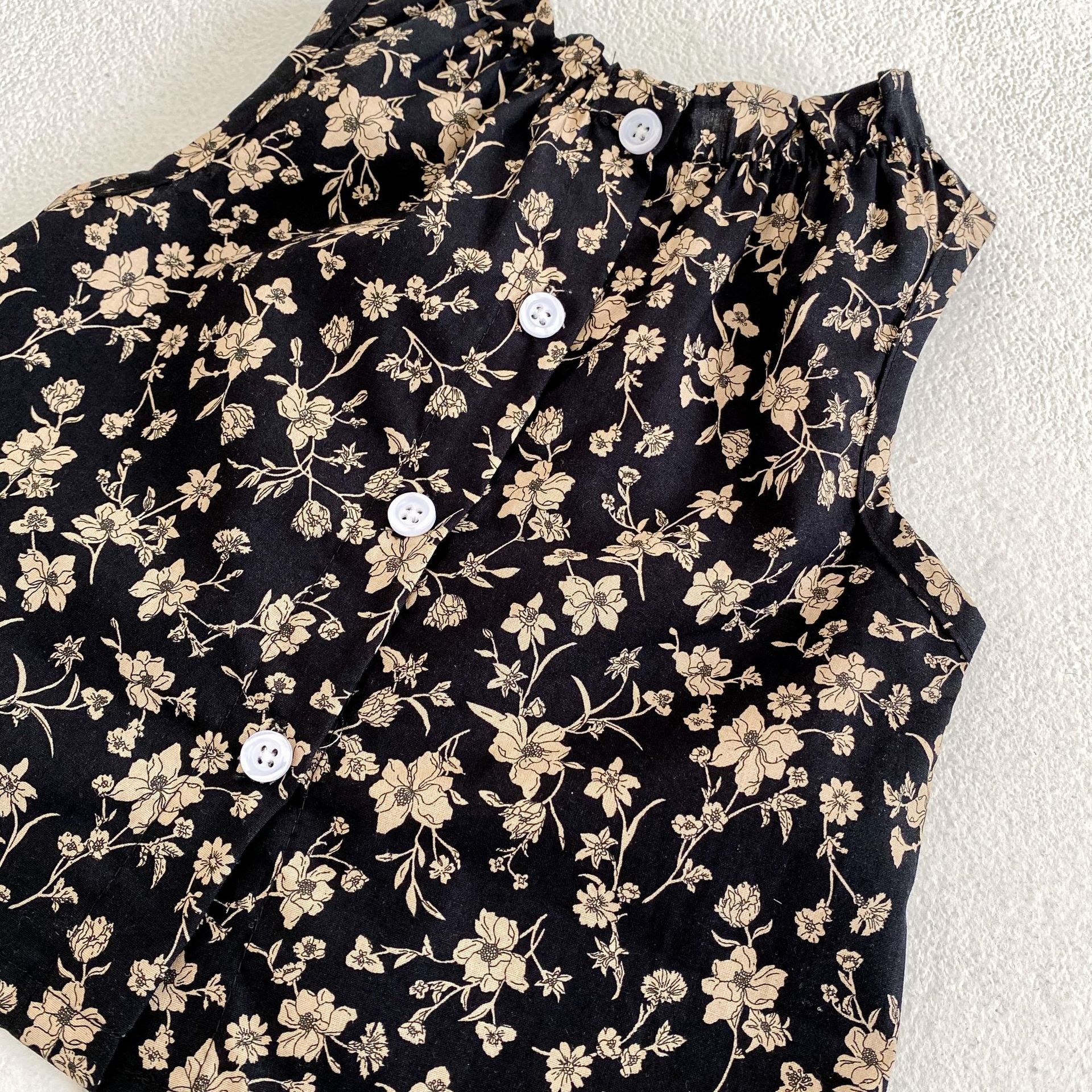 2025 여름 유아 여아용 꽃무늬 러플 칼라 민소매 상의+바디슈트 반바지 2종 세트스토어 가기