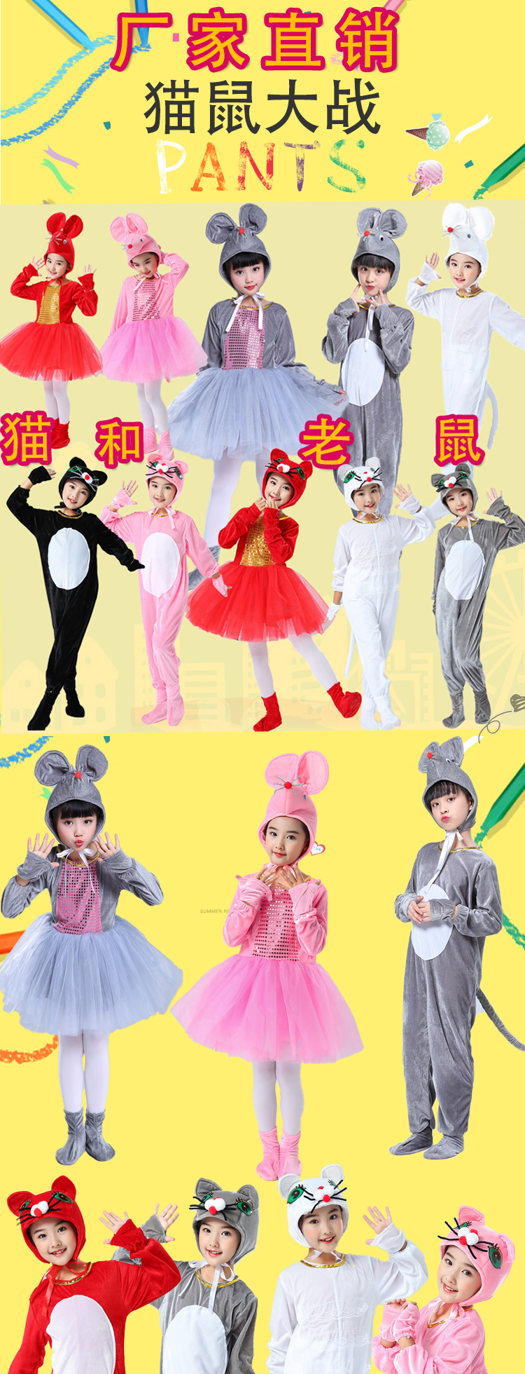 아기 마우스 스타일 성능 의상 성인 어린이 동물 마우스 성능 의상 고양이와 마우스 의상스토어 가기