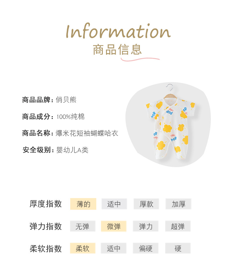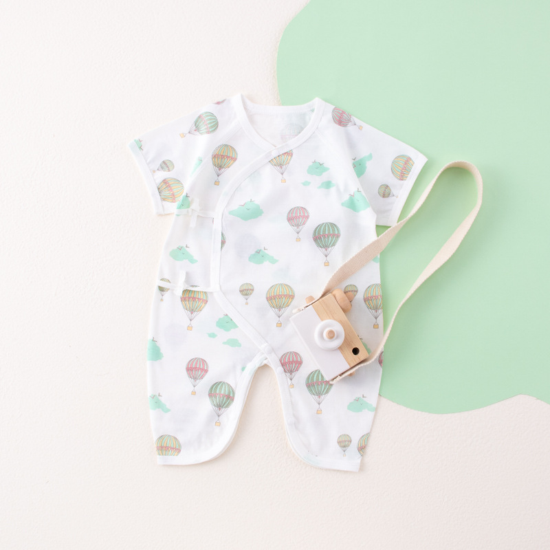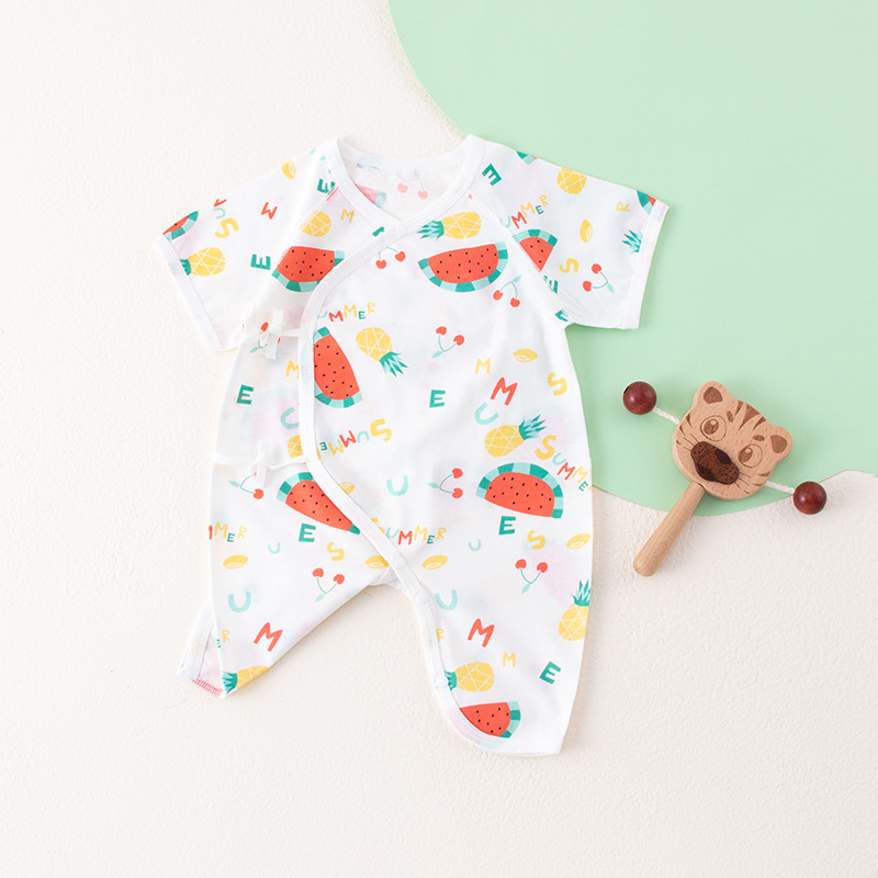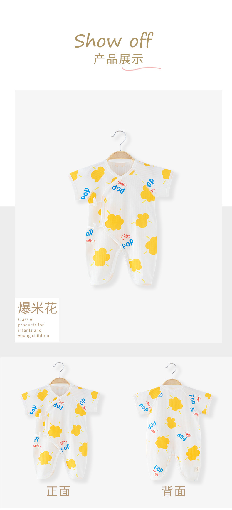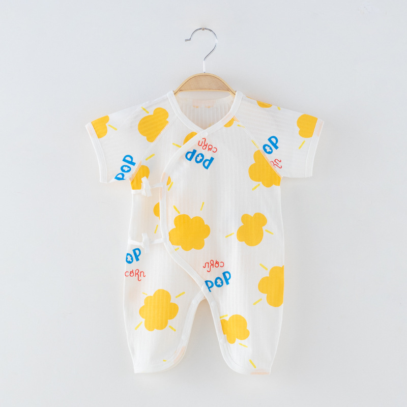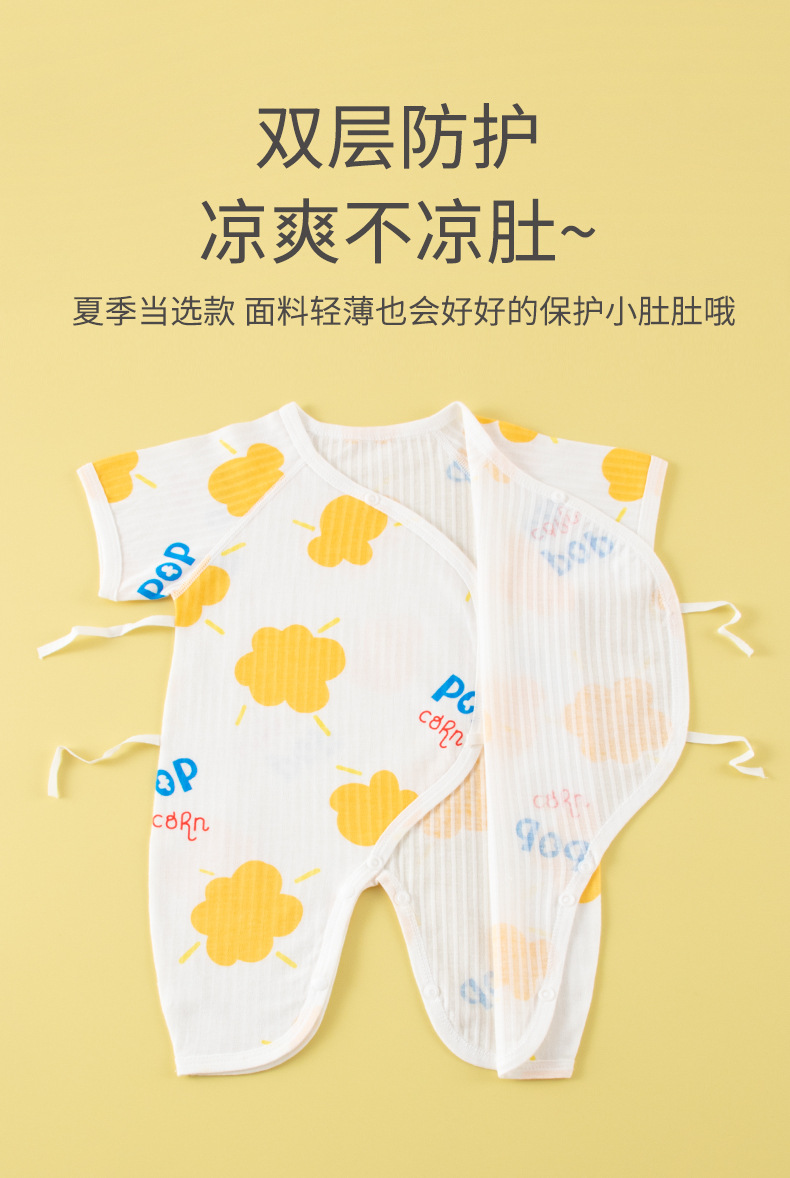 여름 신생아 면 나비 배꼽 보호 옷 아기 스트랩 점프 수트 신생아 반팔 뼈없는 재킷