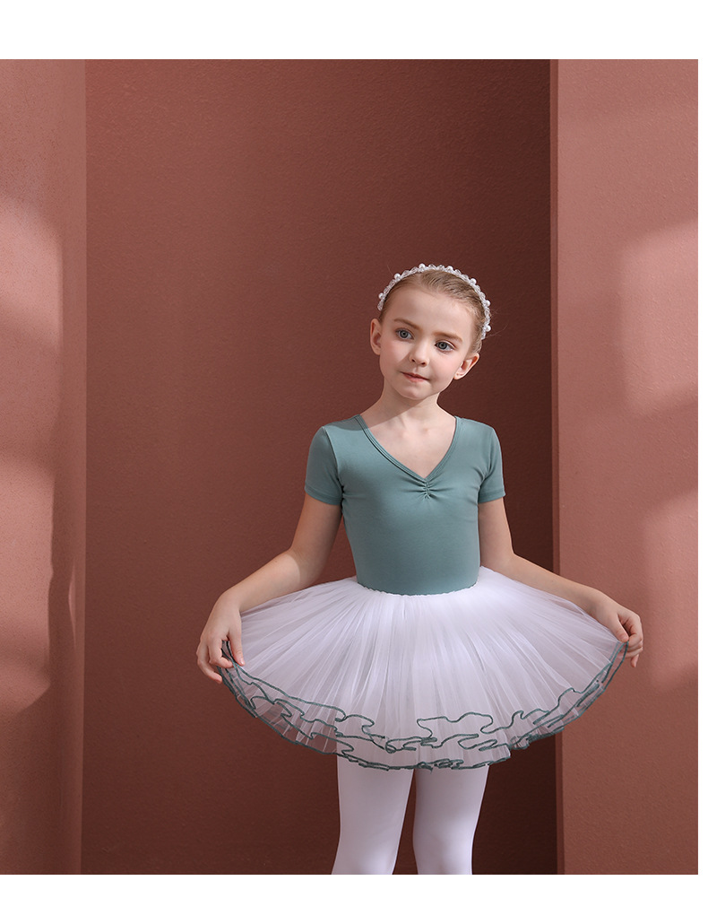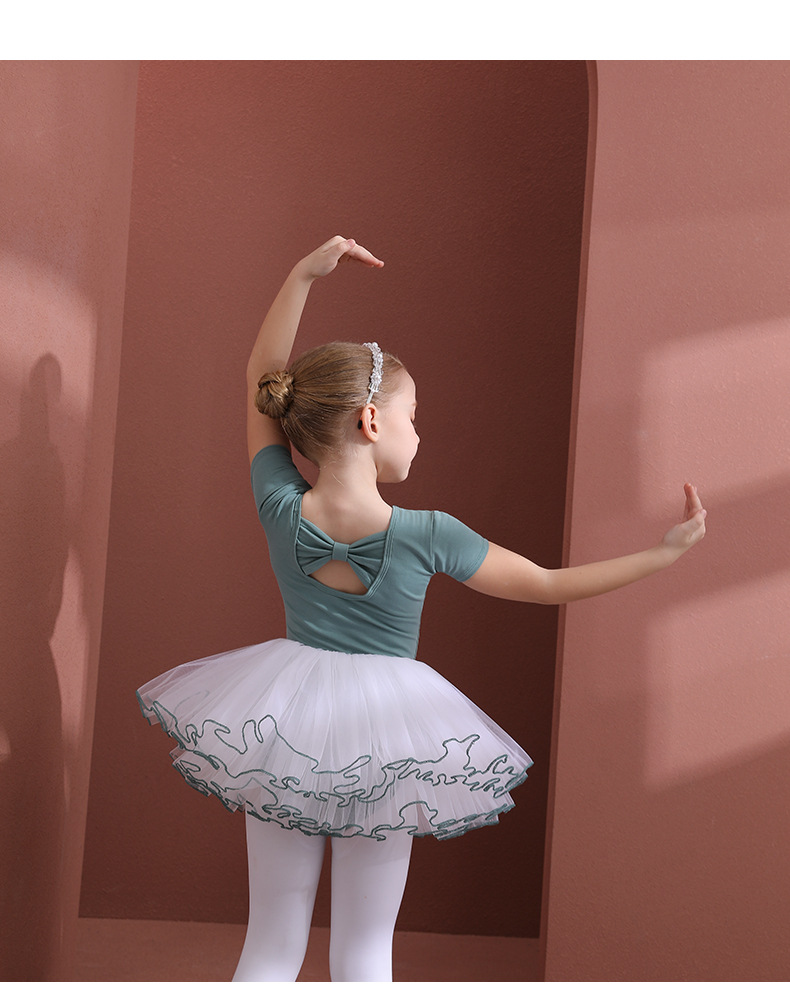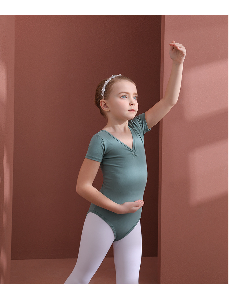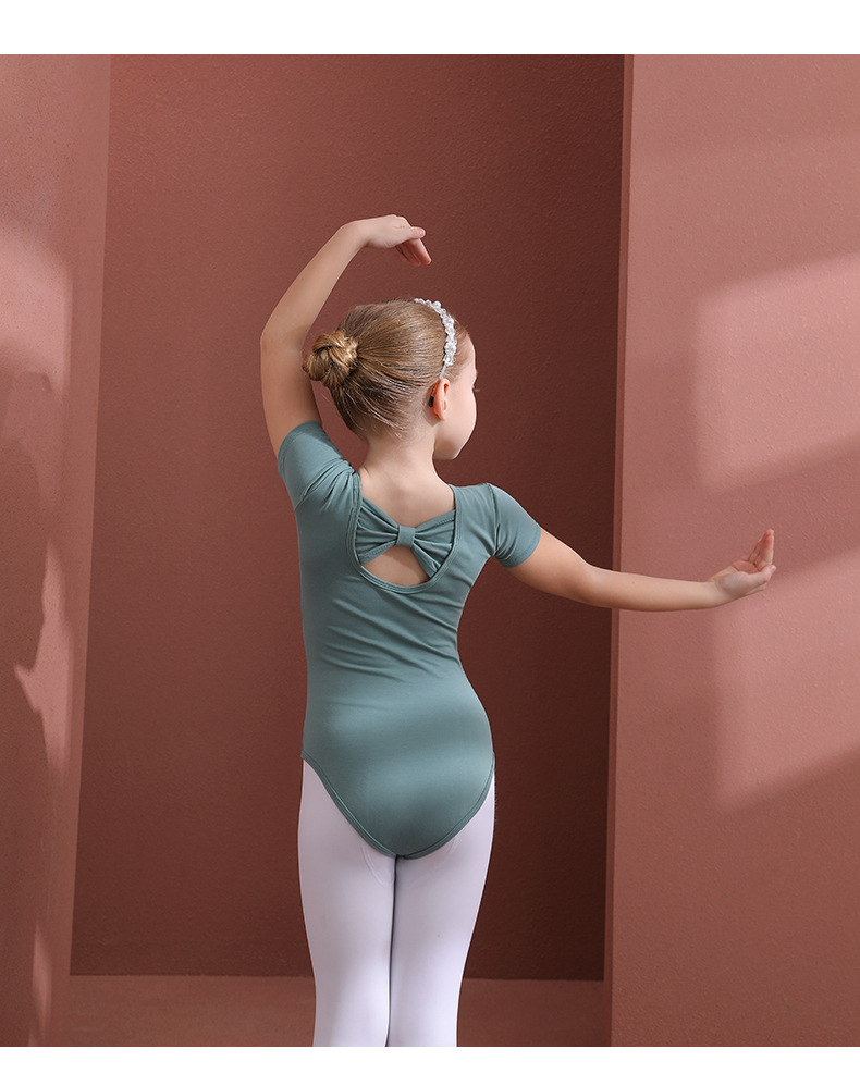 어린이 무용복 녹색 여름 반팔 순면 스냅 버튼 오픈 파일 시험 미술 시험 결합 어린이 중국 무용복스토어 가기