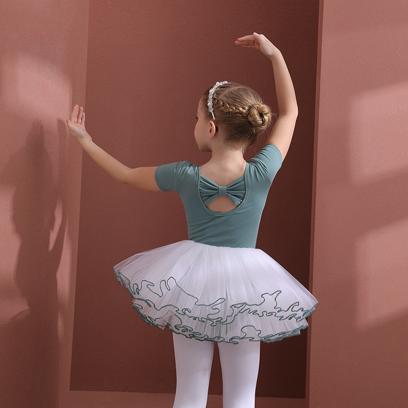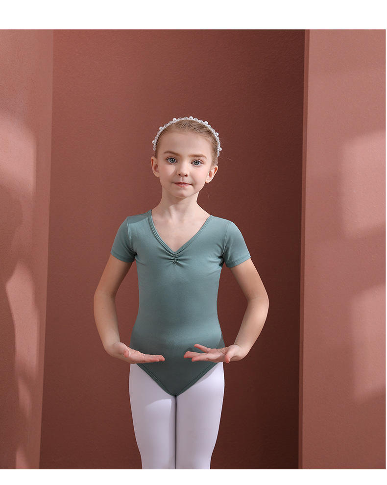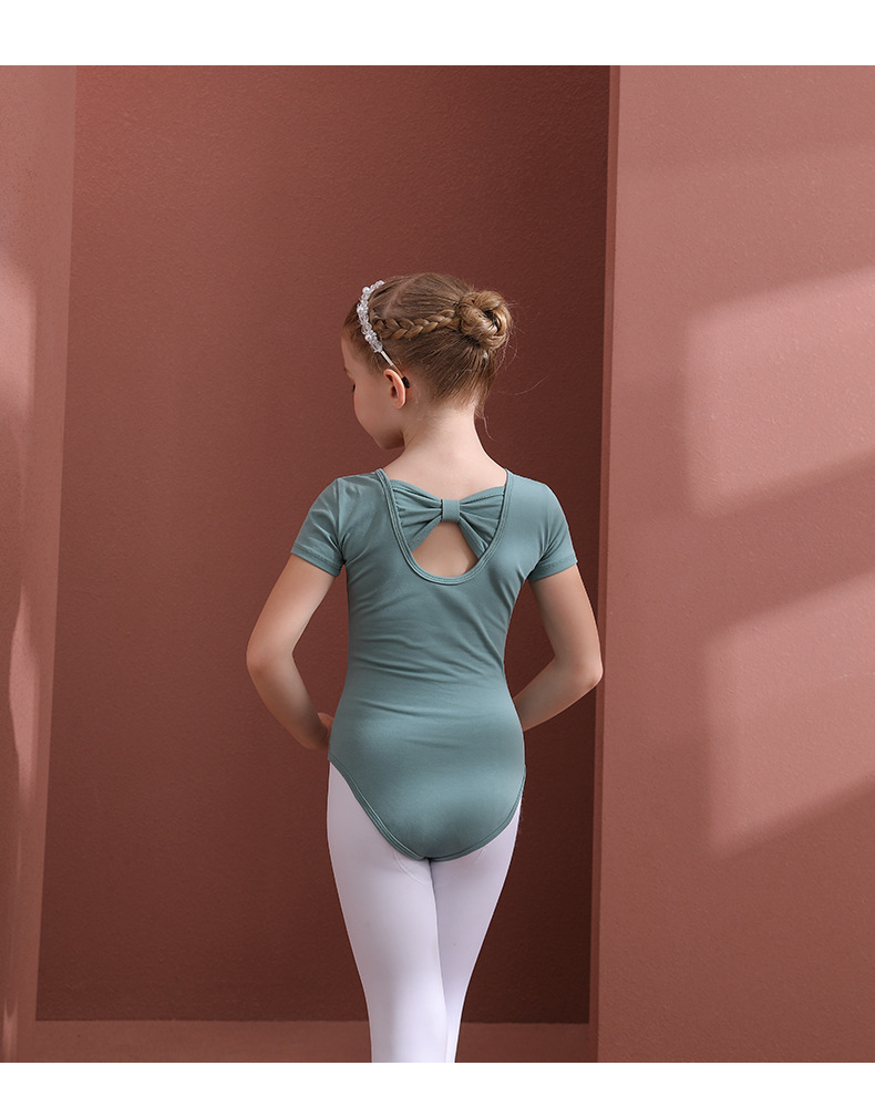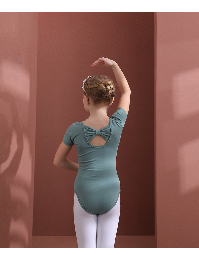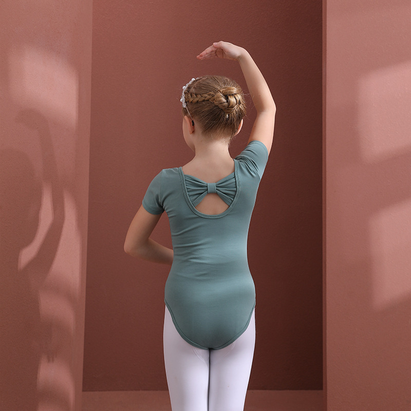 어린이 무용복 녹색 여름 반팔 순면 스냅 버튼 오픈 파일 시험 미술 시험 결합 어린이 중국 무용복스토어 가기