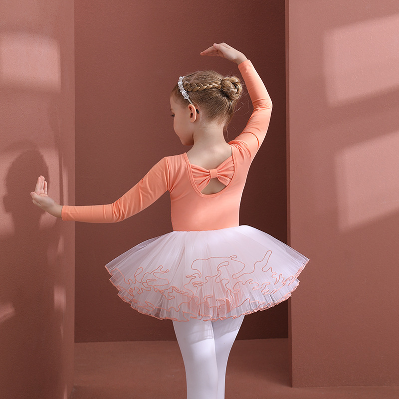 • 파우더 오렌지 긴 소매 옷 + 고밀도 스커트