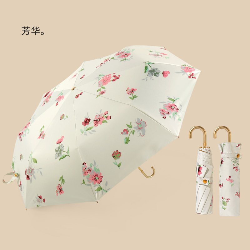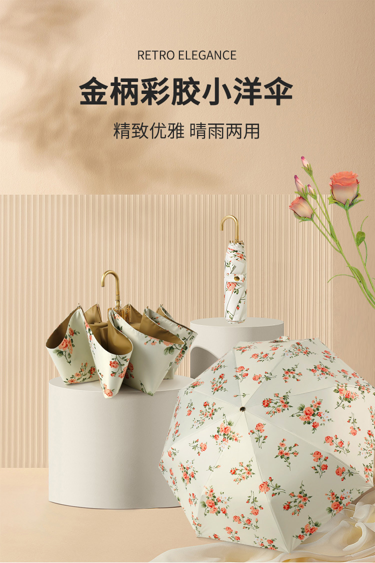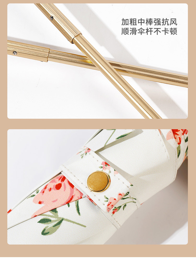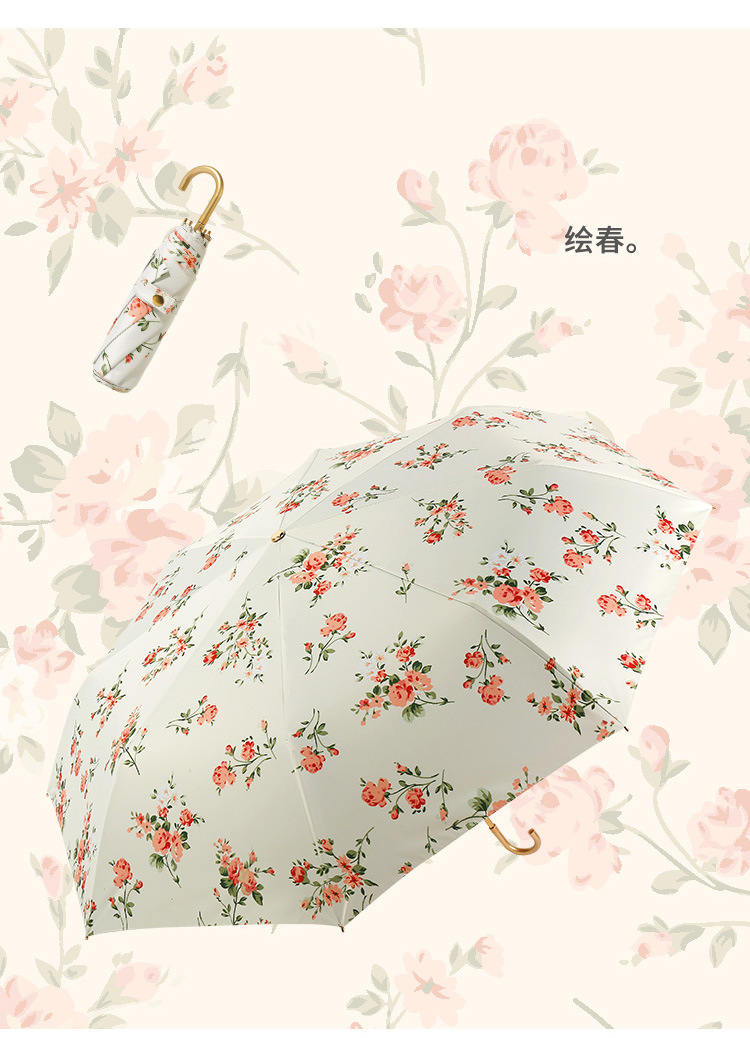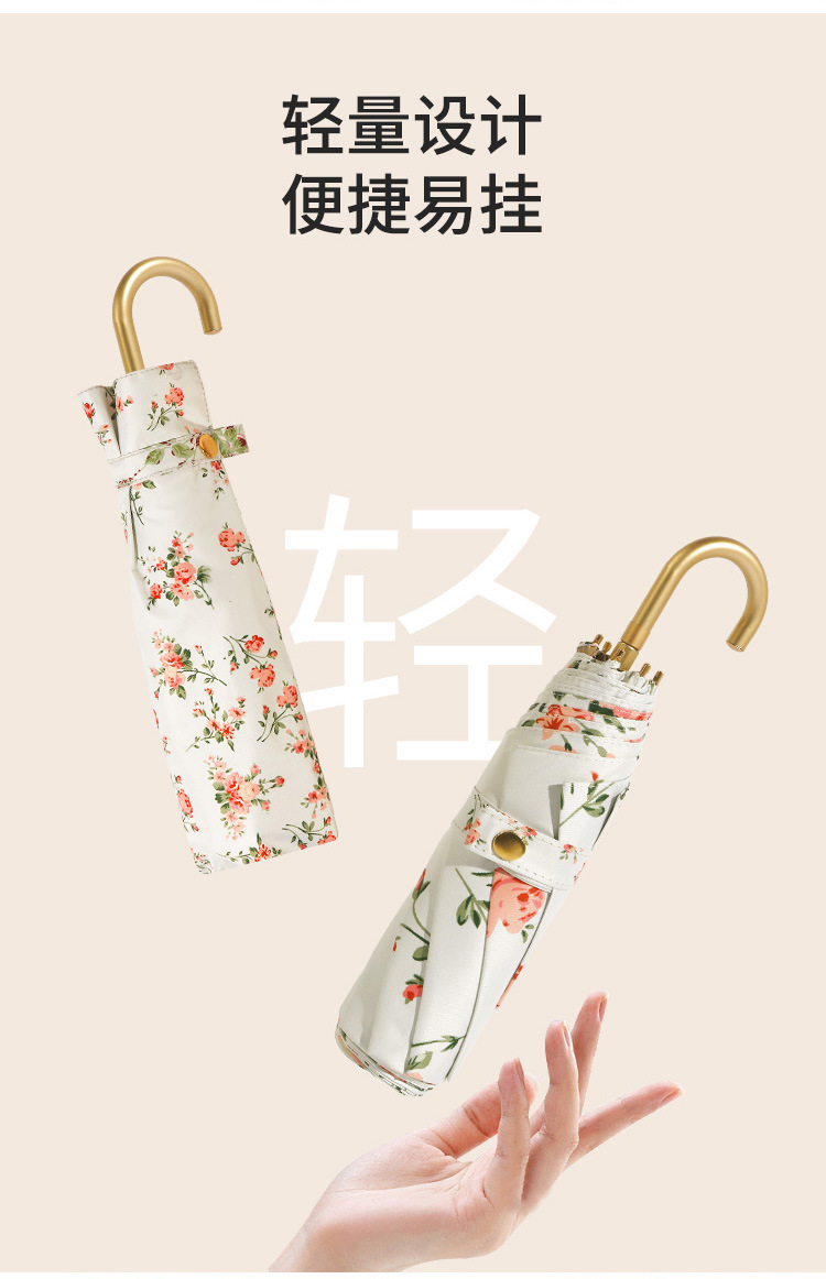 작은 금 후크 금 접착제 8 뼈 우산 여자의 접는 복고풍 곡선 손잡이 꽃 태양 우산 자외선 차단제 자외선 차단 차양