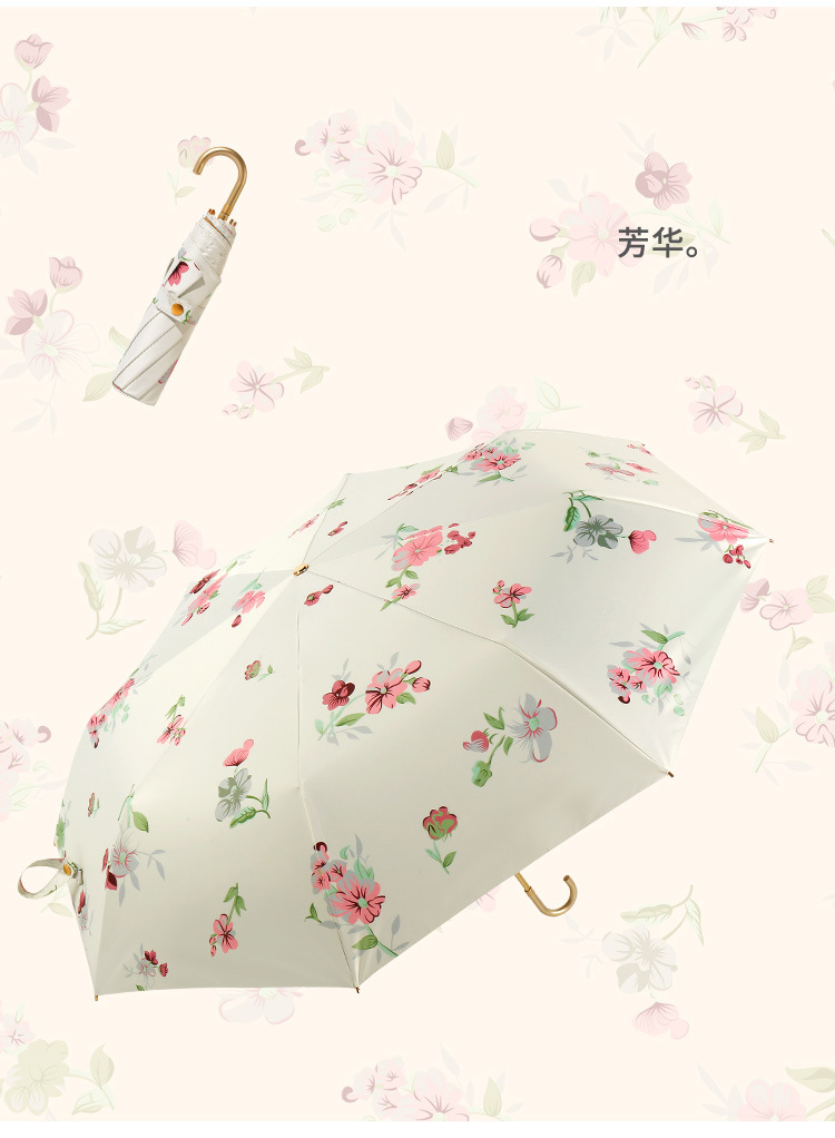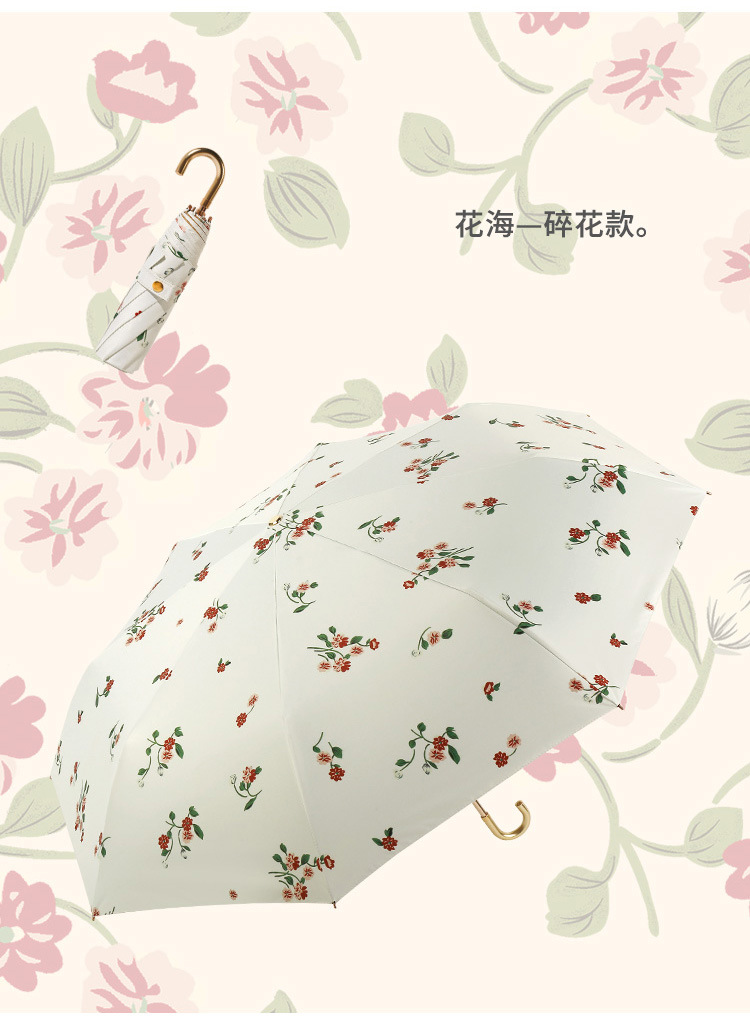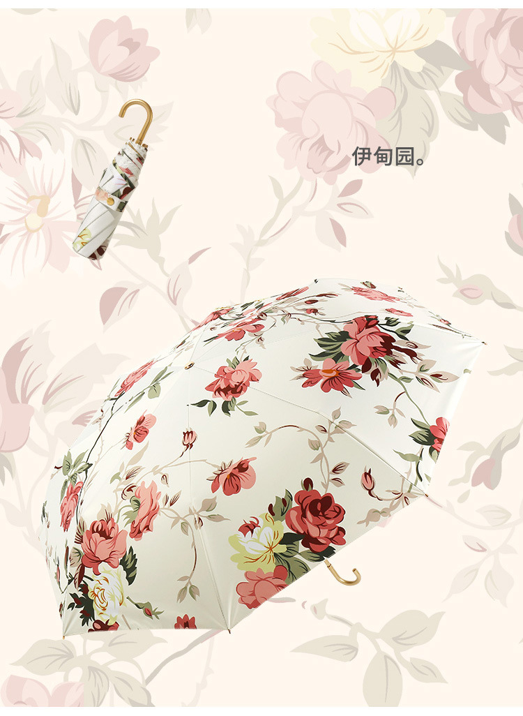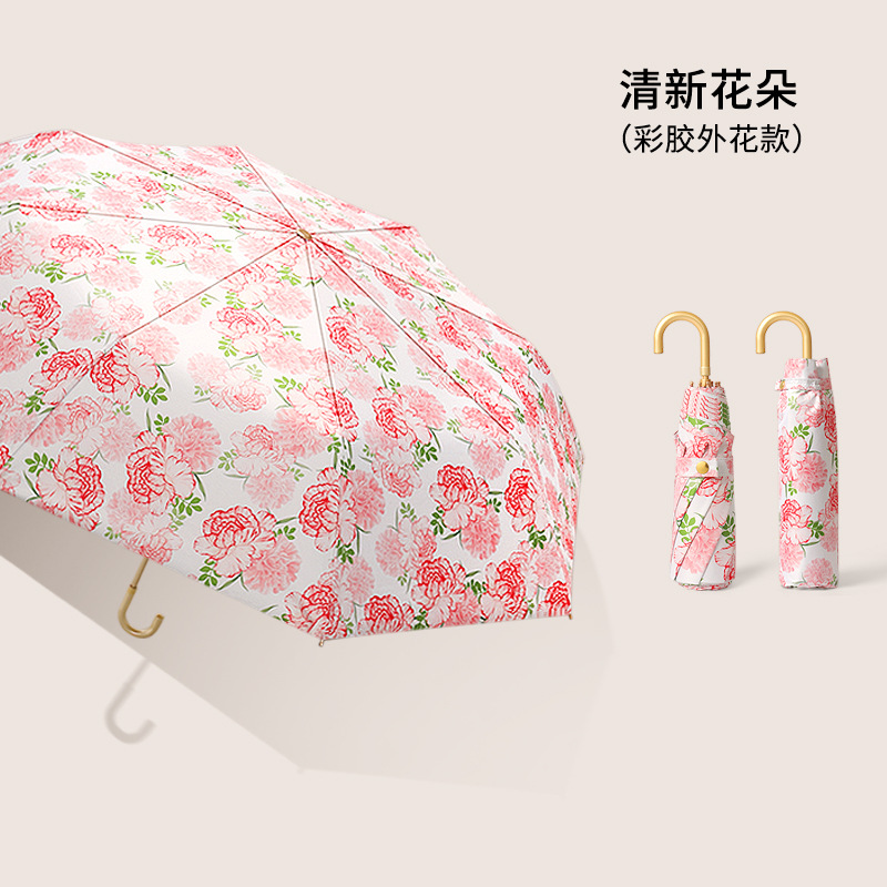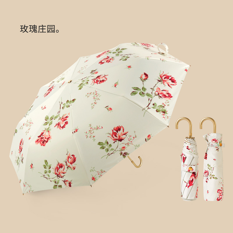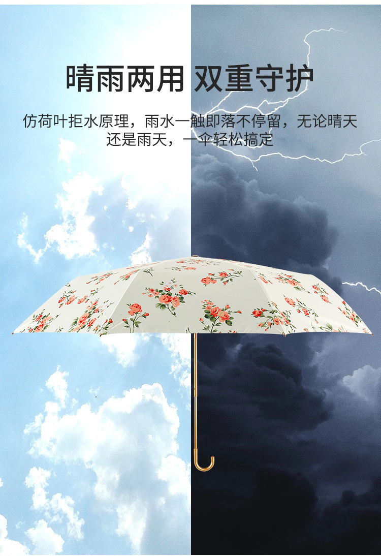작은 금 후크 금 접착제 8 뼈 우산 여자의 접는 복고풍 곡선 손잡이 꽃 태양 우산 자외선 차단제 자외선 차단 차양