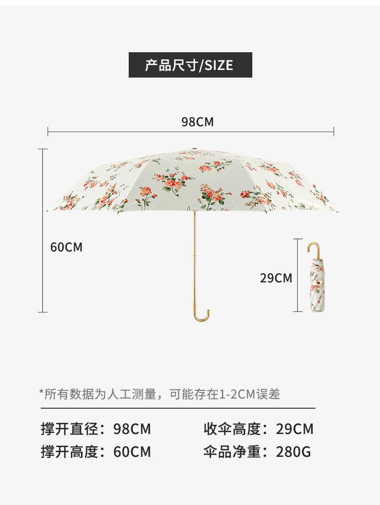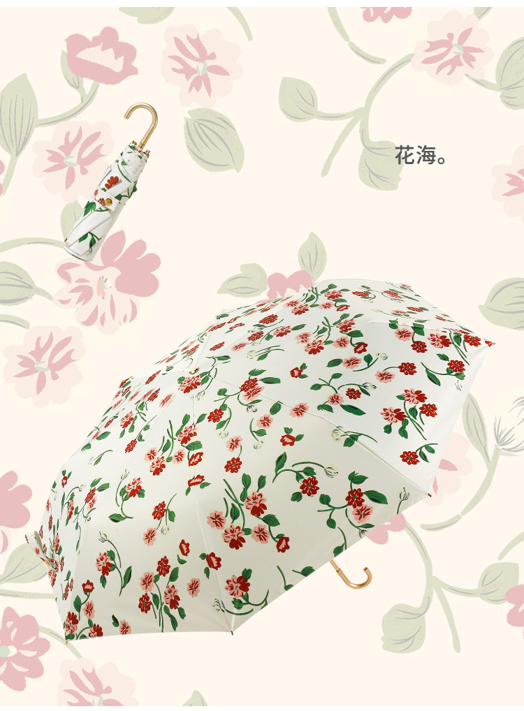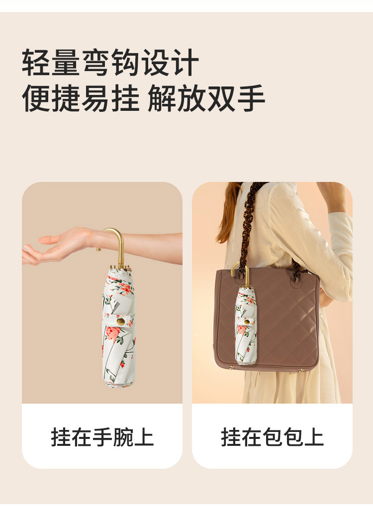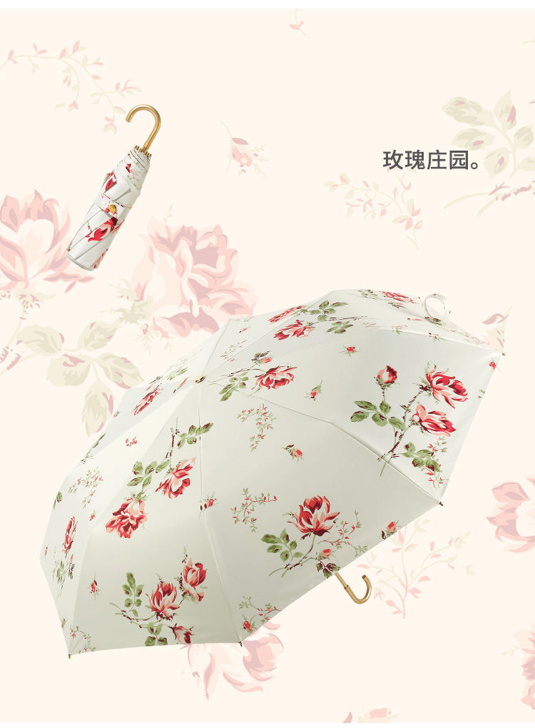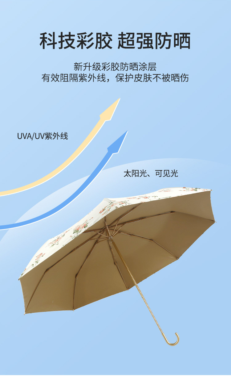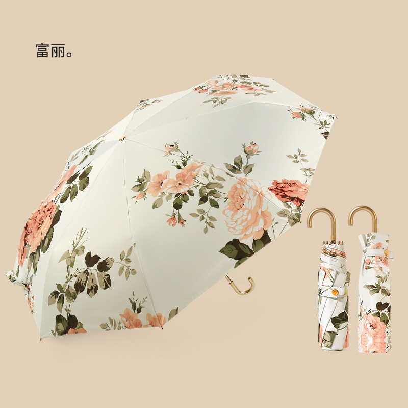 작은 금 후크 금 접착제 8 뼈 우산 여자의 접는 복고풍 곡선 손잡이 꽃 태양 우산 자외선 차단제 자외선 차단 차양