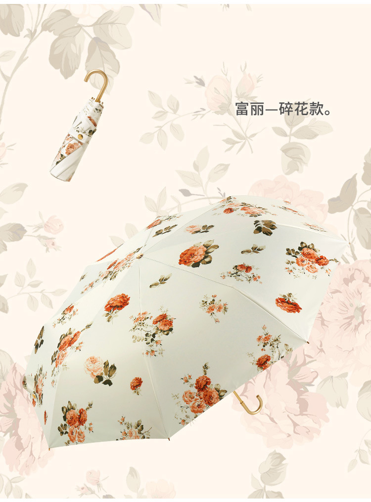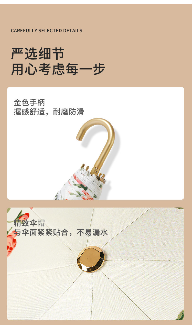 작은 금 후크 금 접착제 8 뼈 우산 여자의 접는 복고풍 곡선 손잡이 꽃 태양 우산 자외선 차단제 자외선 차단 차양스토어 가기