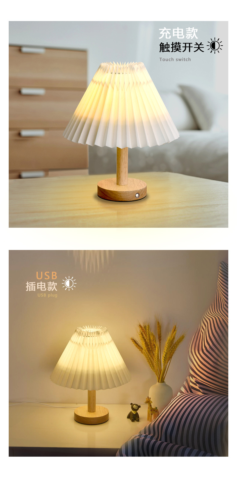 Ins Vintage 주름 원격 제어 나이트 라이트 북유럽 홈스테이 침실 장식 테이블 램프 우산 침대 옆 램프 창조적 인 선물
