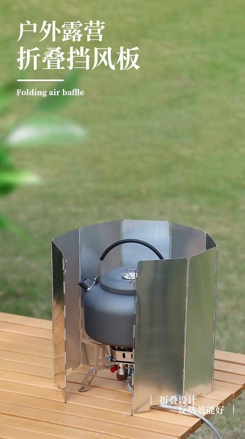 야외 캠핑 스토브 스토브 바람 디플렉터 초경량 알루미늄 합금 래치 포함 접이식 천 가방 포함 8 장
