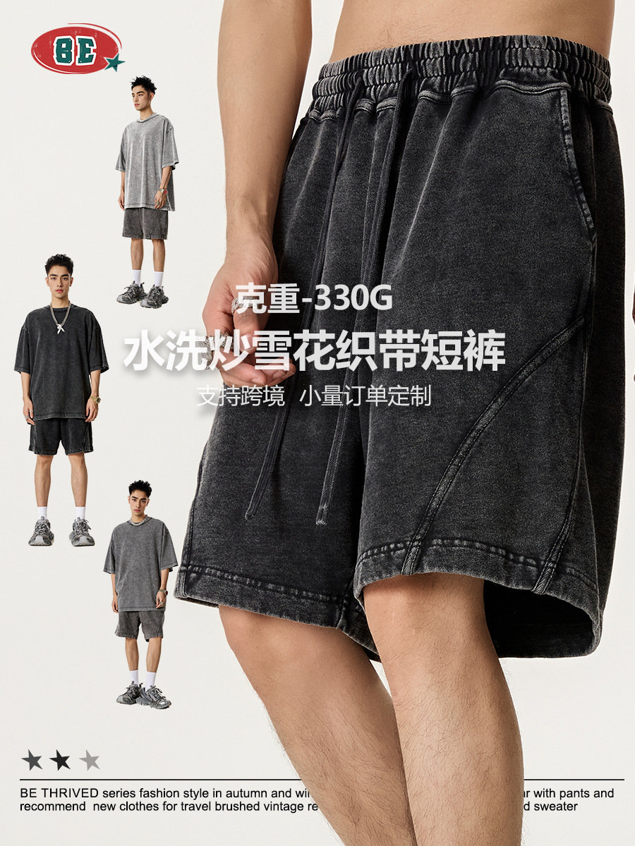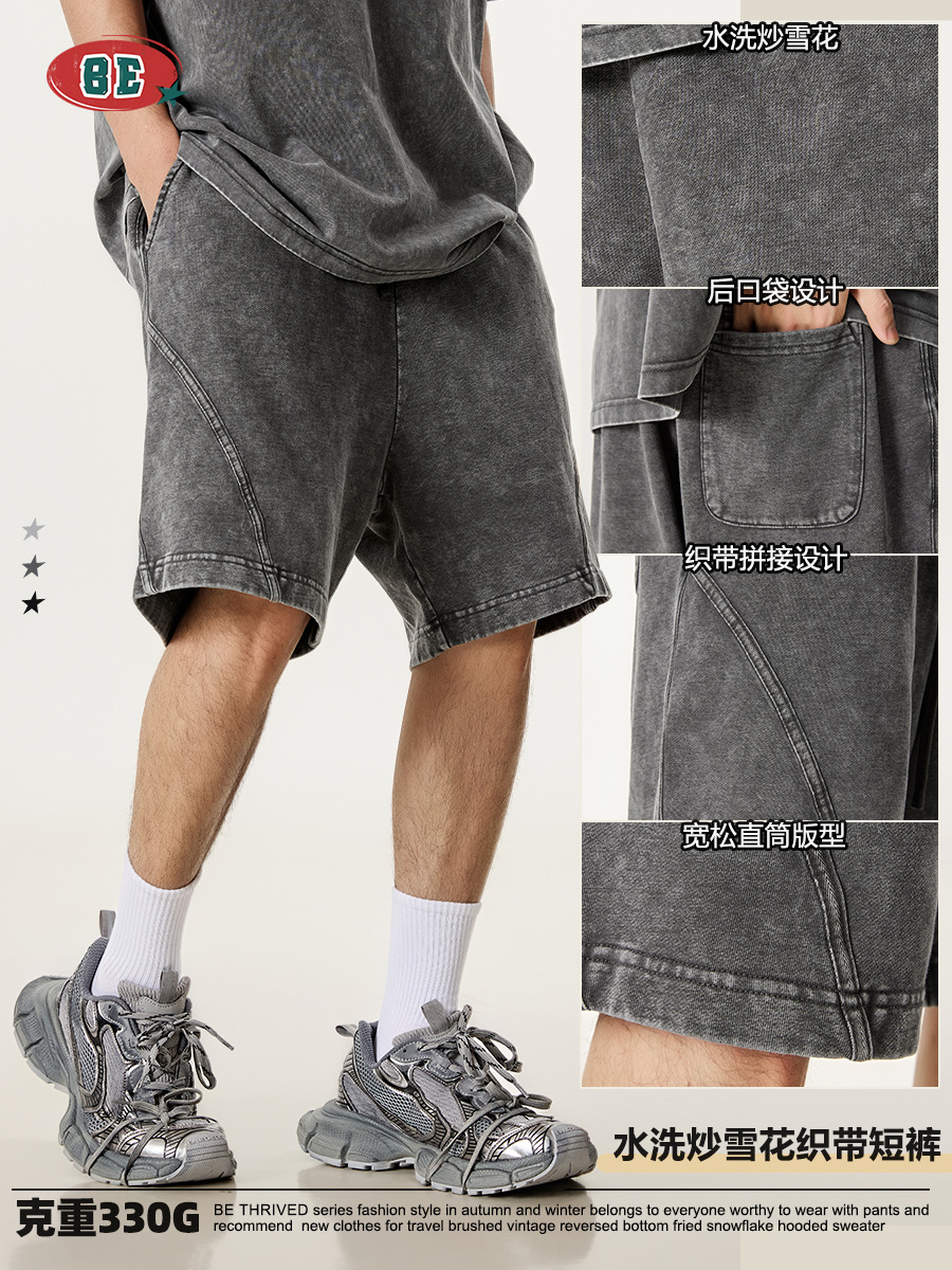 BE 남성복 2025 여름 유럽과 미국의 국경 간 무역 트렌디 브랜드 스노우플레이크 웨빙 캐주얼 바지 남성용 루즈 스포츠 반바지스토어 가기