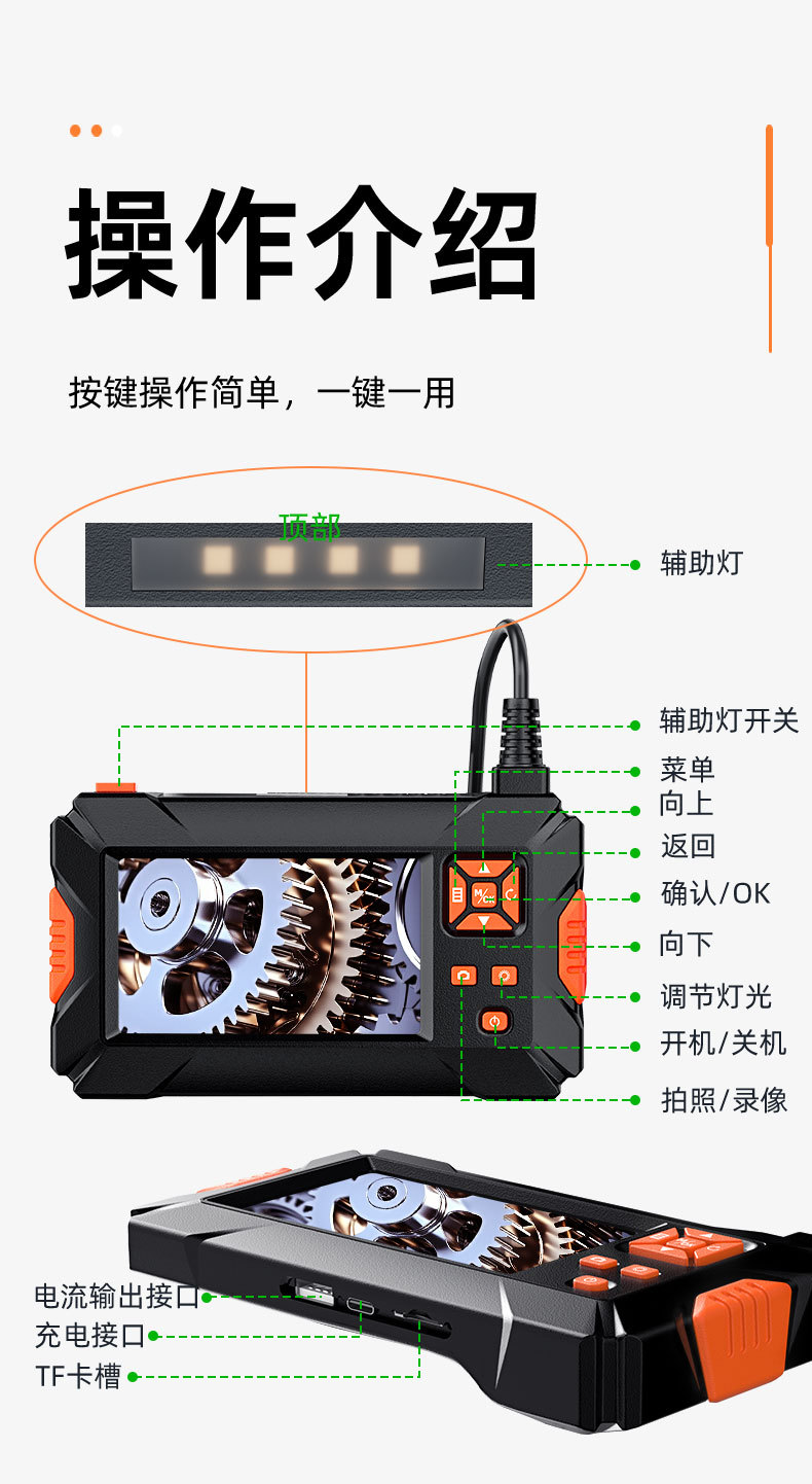 고화질 하수관 산업용 내시경 4.3 인치 스크린 자동차 엔진 자동 수리 듀얼 카메라 포함