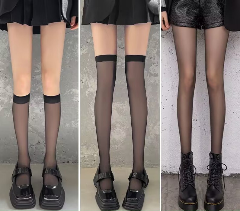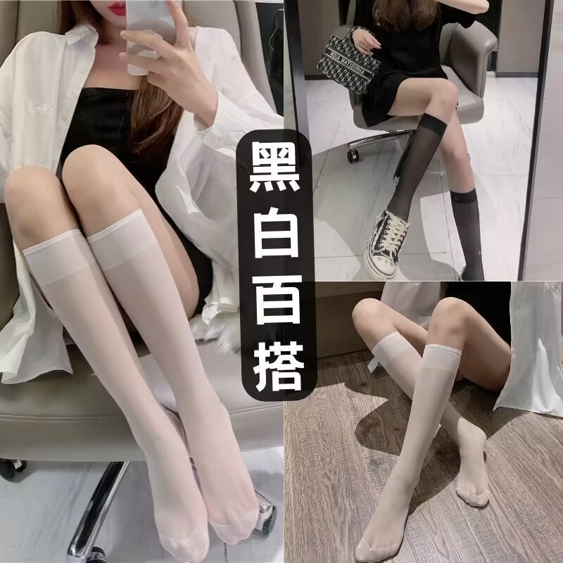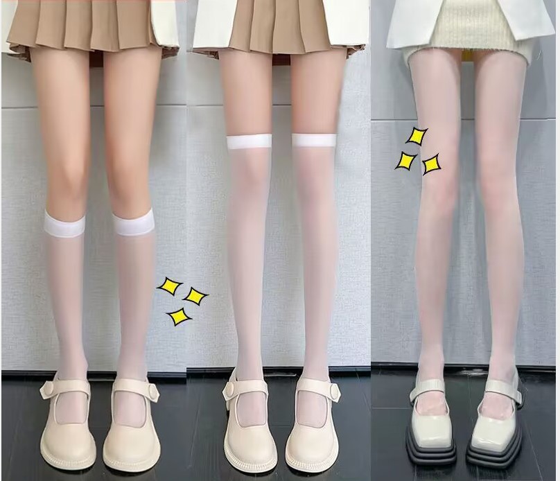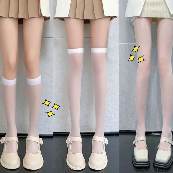 화이트 실크 스타킹 여성용 로리타 jk 반투명 커프 스타킹 여름 얇은 얇은 다리 후크 방지 실크 무릎 위 스타킹 레깅스스토어 가기