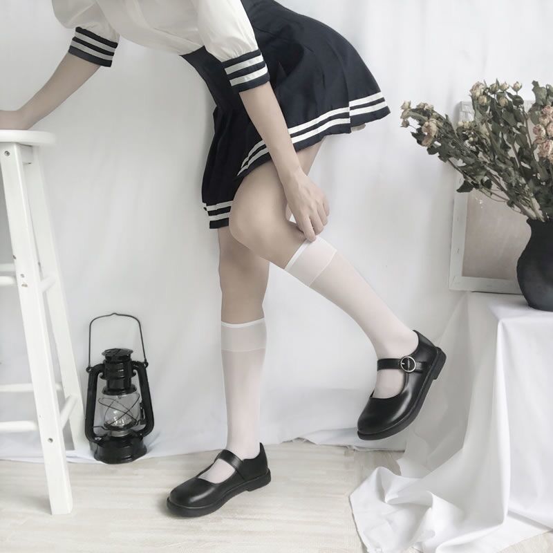 화이트 실크 스타킹 여성용 로리타 jk 반투명 커프 스타킹 여름 얇은 얇은 다리 후크 방지 실크 무릎 위 스타킹 레깅스