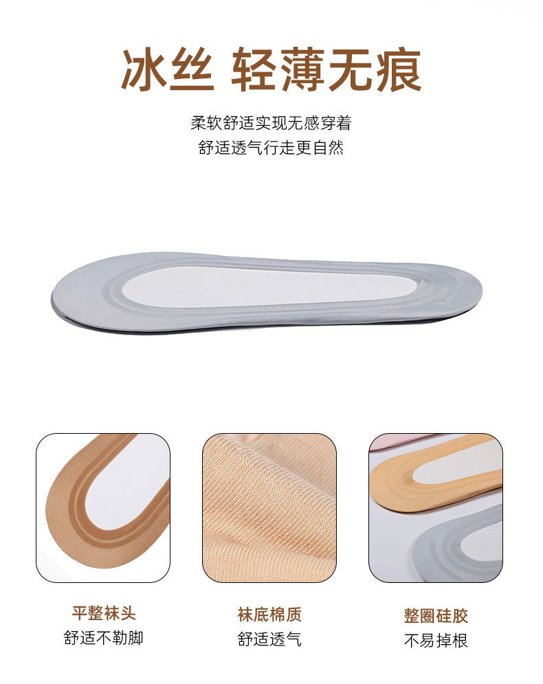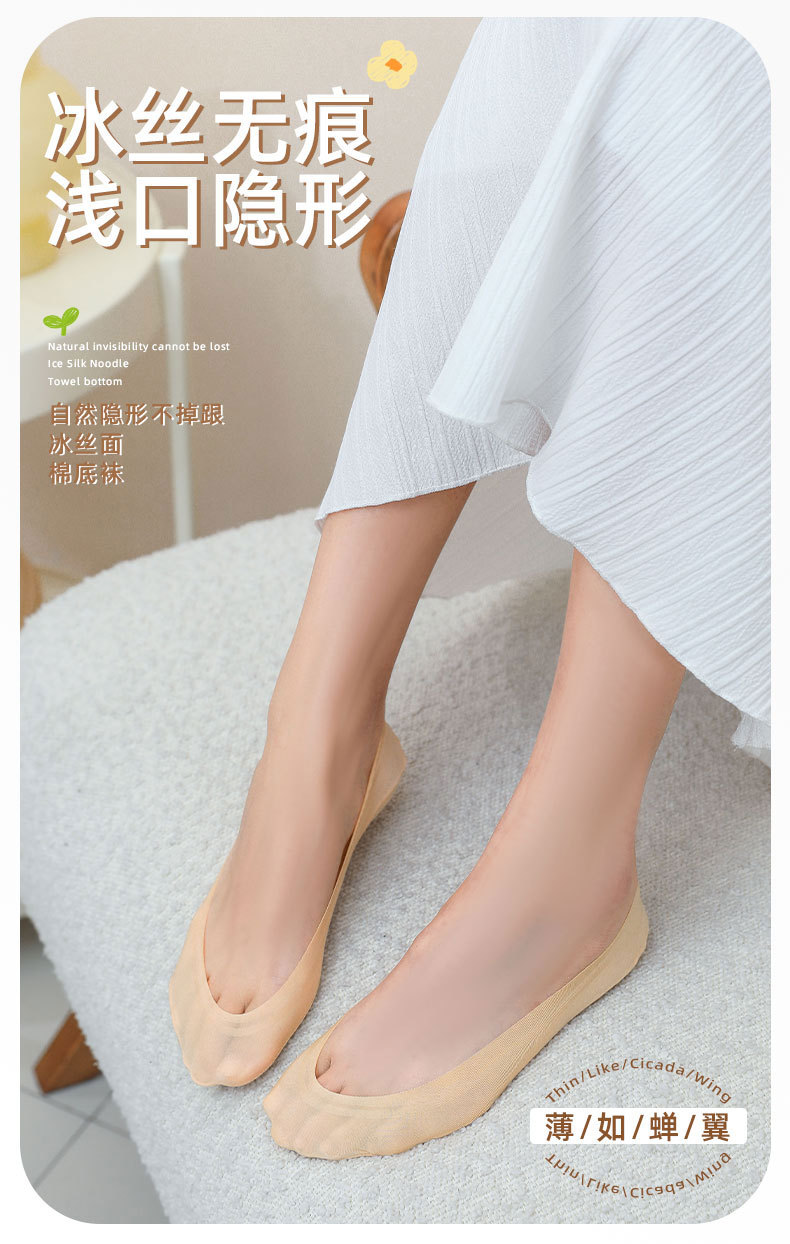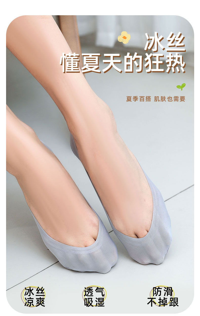 보트와 함께 떨어지지 마세요 양말 여성용 보이지 않는 양말 양말 얕은 입 여름 새로운 아이스 실크 여성용 보트 양말 실리콘 미끄럼 방지 공장 재고스토어 가기