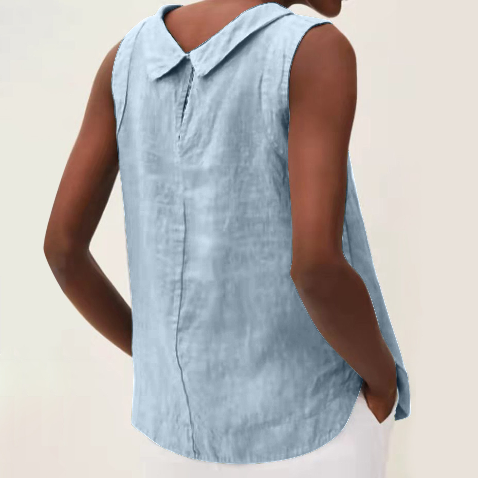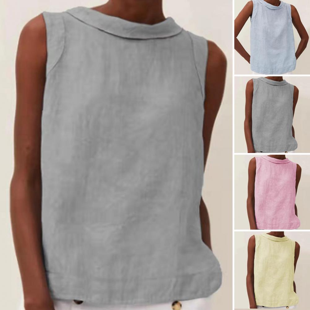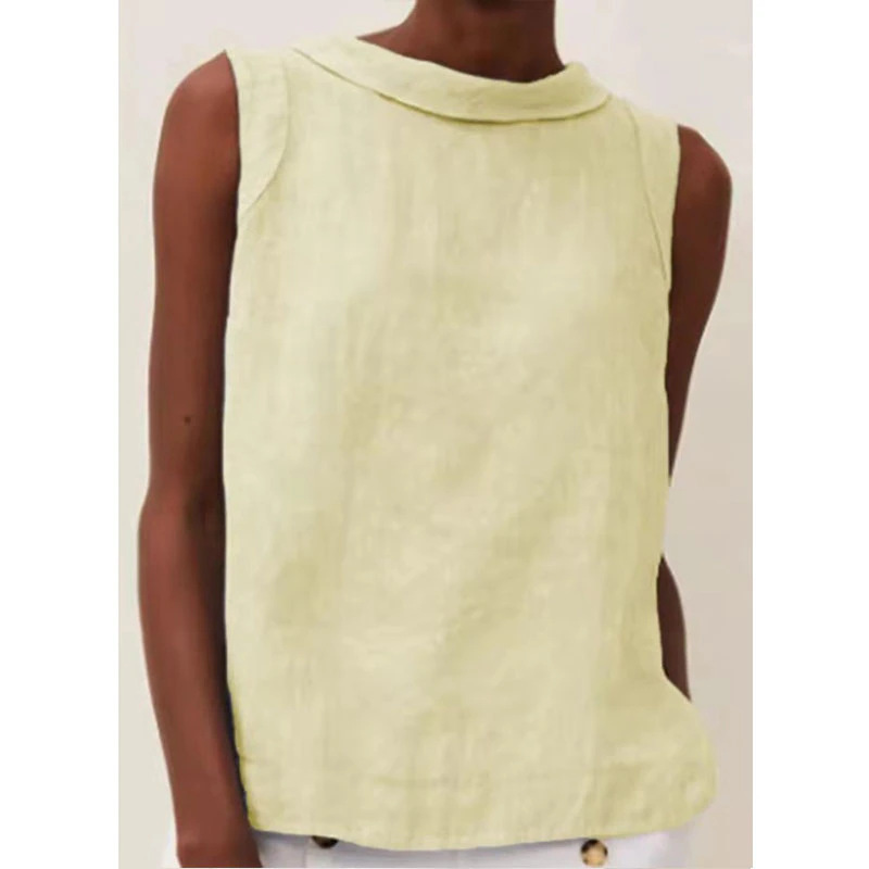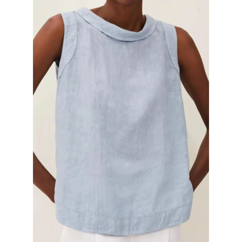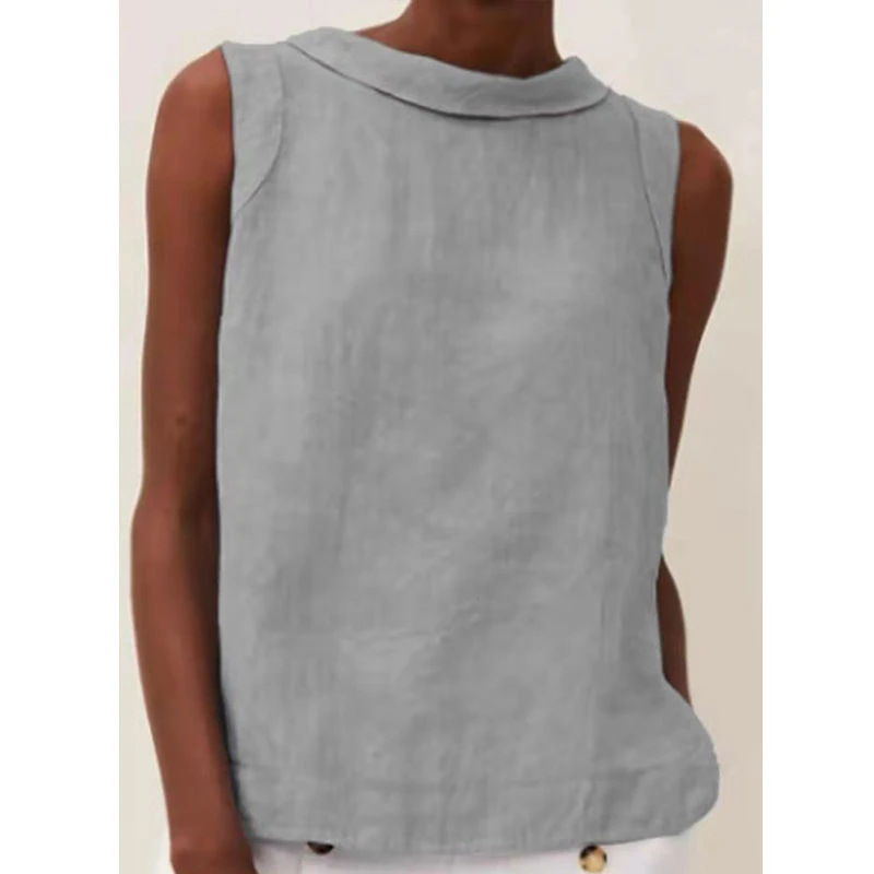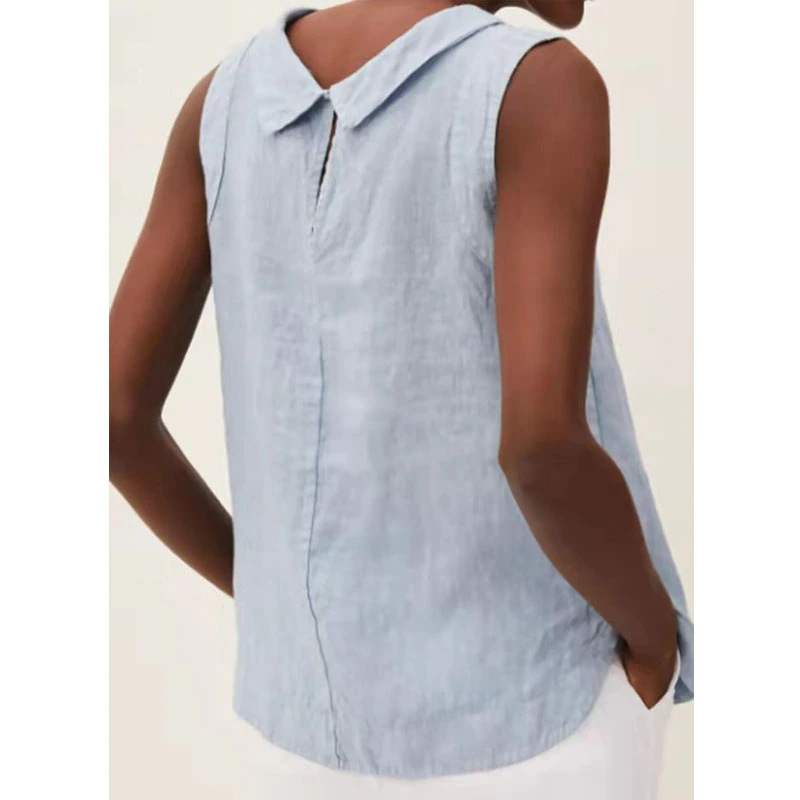 2023 유럽 및 미국 대외 무역 여성 의류 아마존 New eBay 독립 역 여성용 라펠 민소매 단색 면화와 린넨 셔츠스토어 가기
