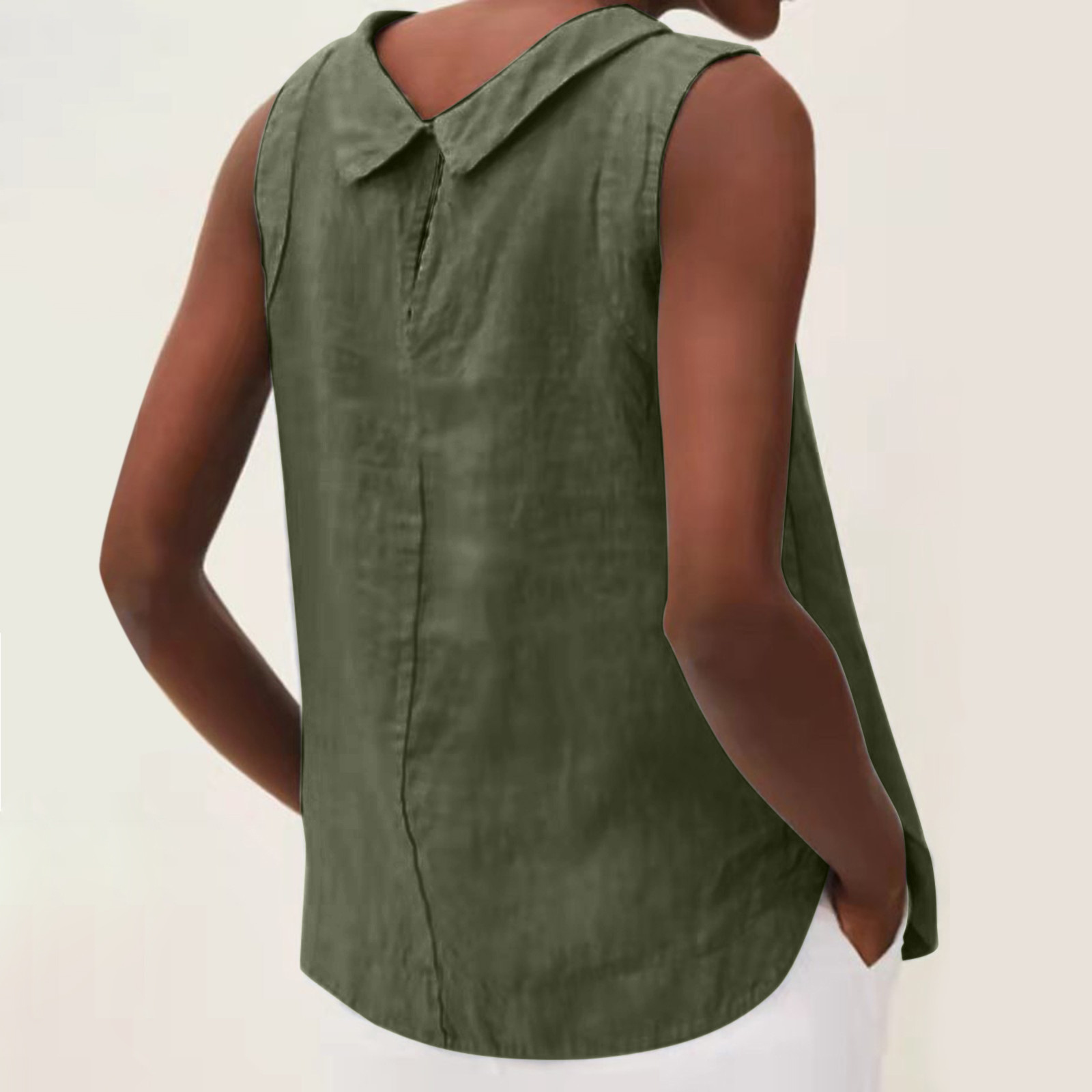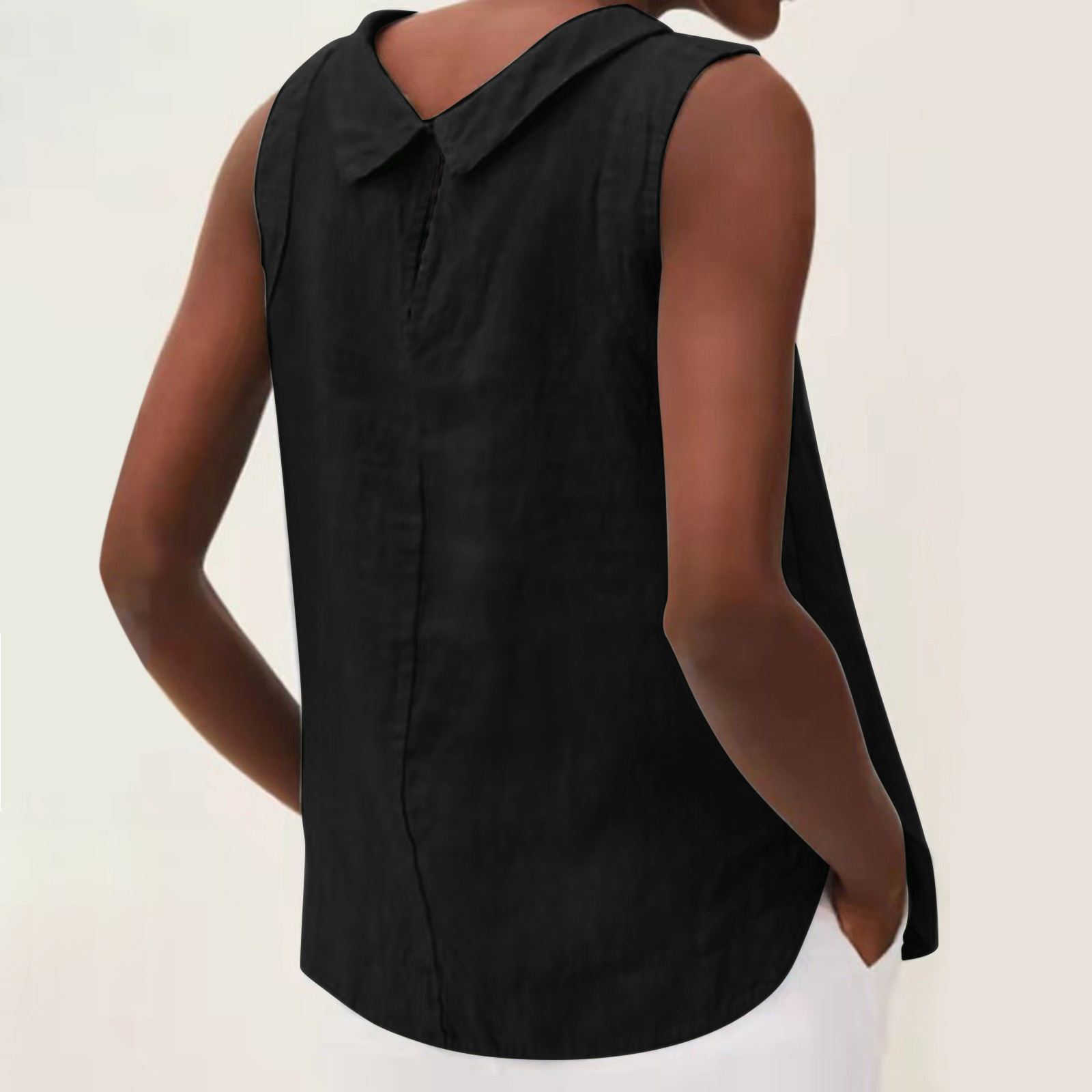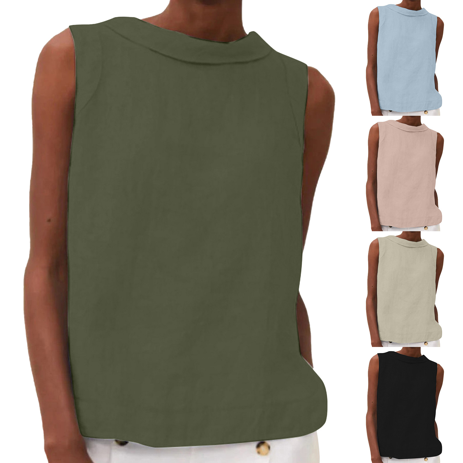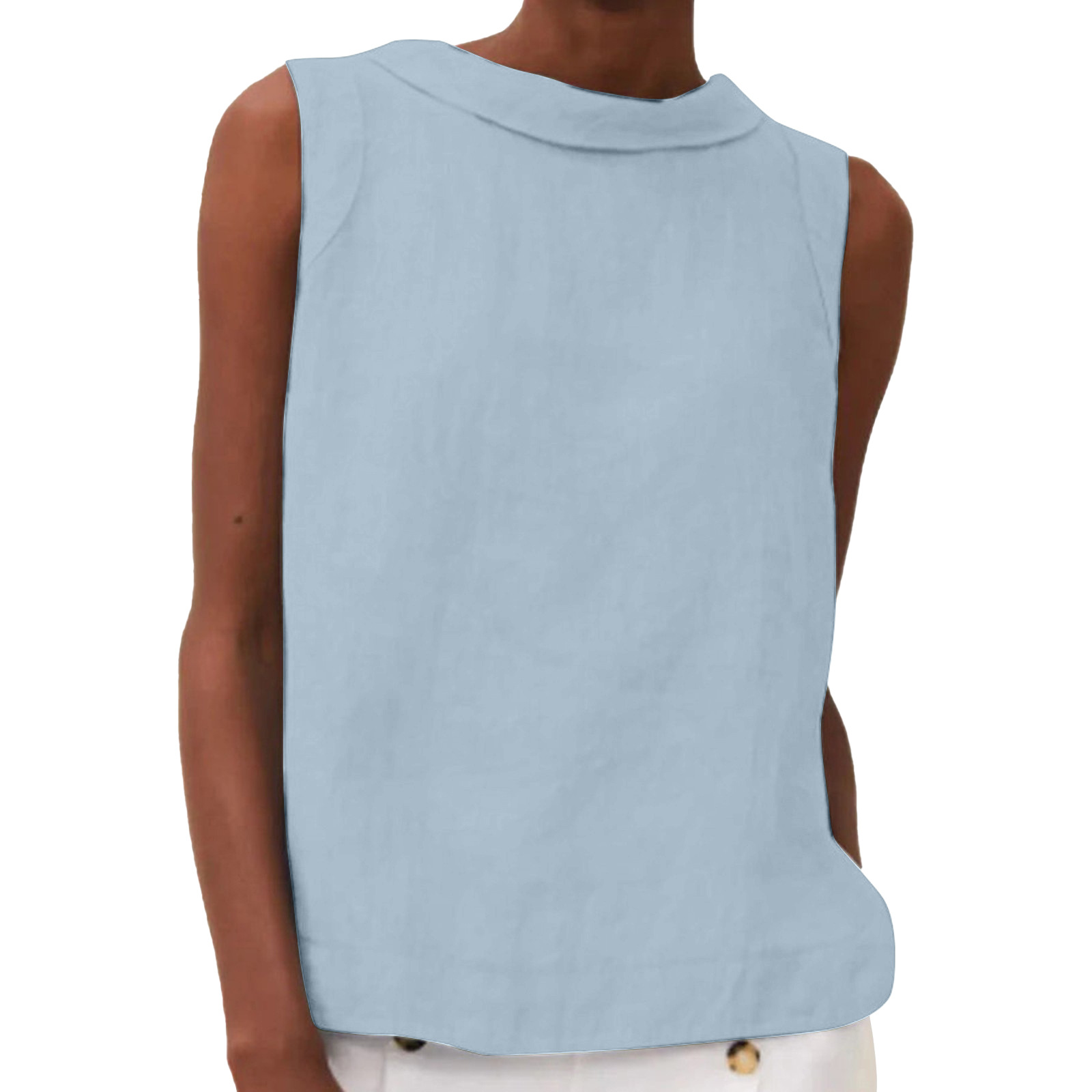 2023 유럽 및 미국 대외 무역 여성 의류 아마존 New eBay 독립 역 여성용 라펠 민소매 단색 면화와 린넨 셔츠스토어 가기