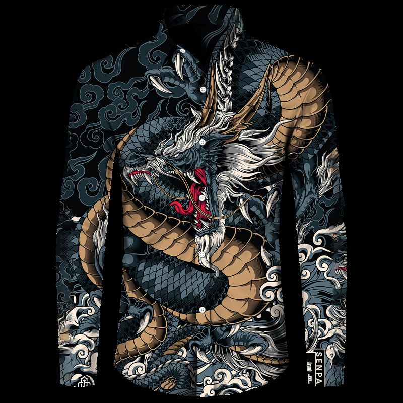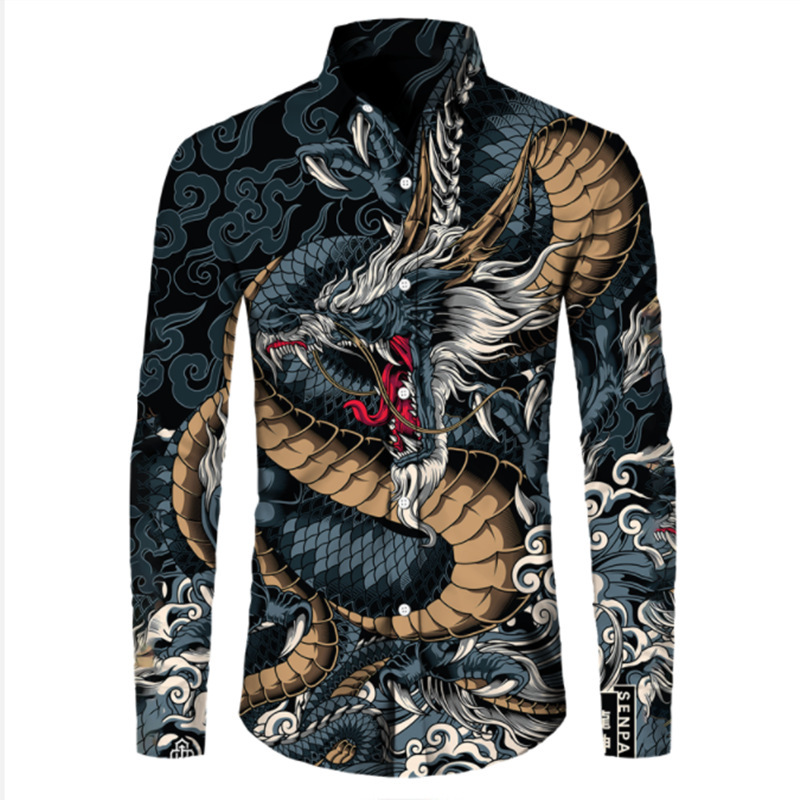 2023 크로스 보더 뉴 드래곤 3D 프린팅 봄과 여름 남성 긴팔 플라워 셔츠 패션 캐주얼 셔츠 공장 직판스토어 가기