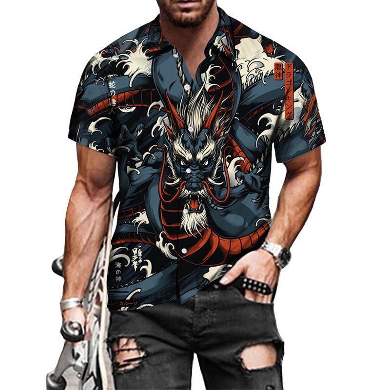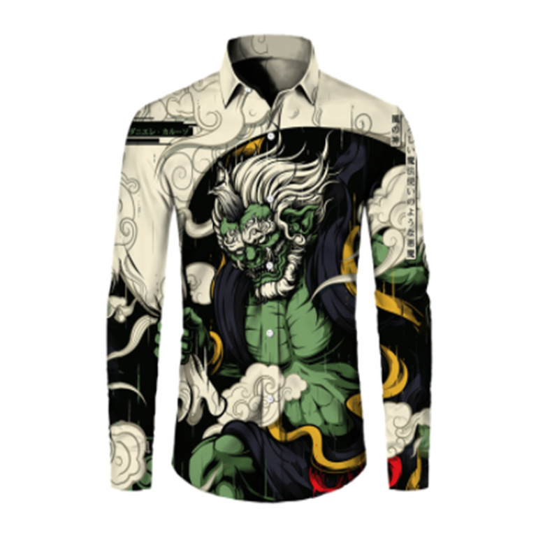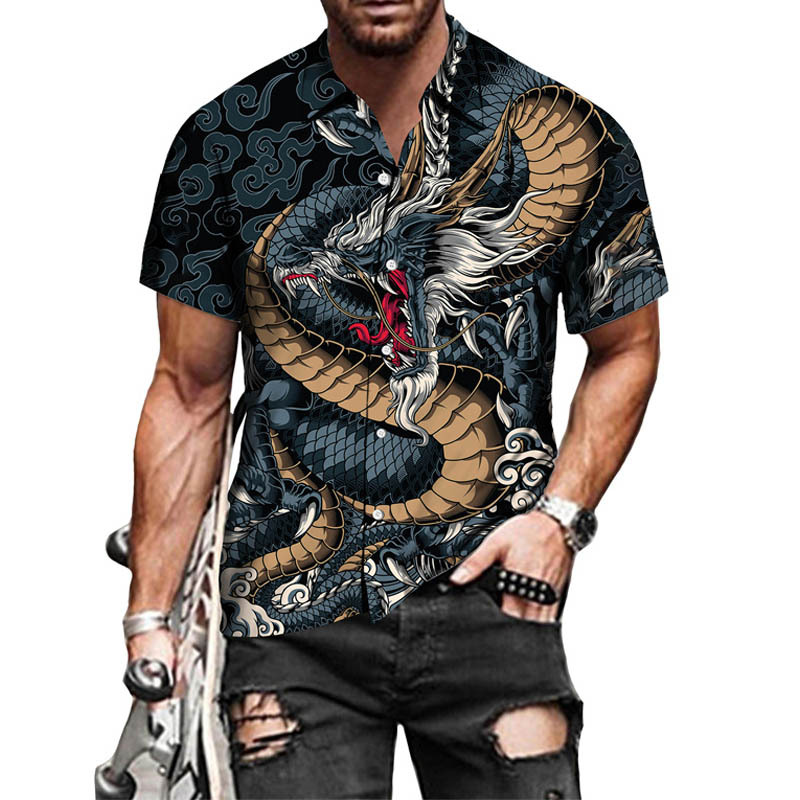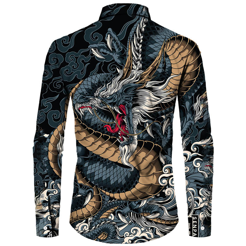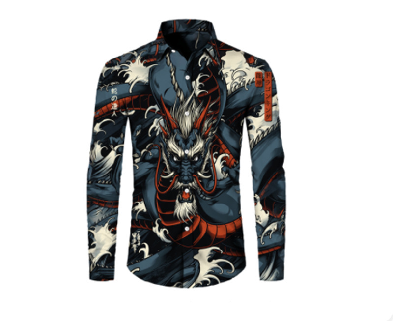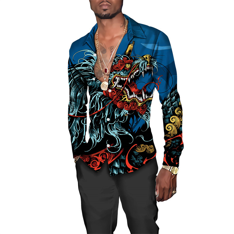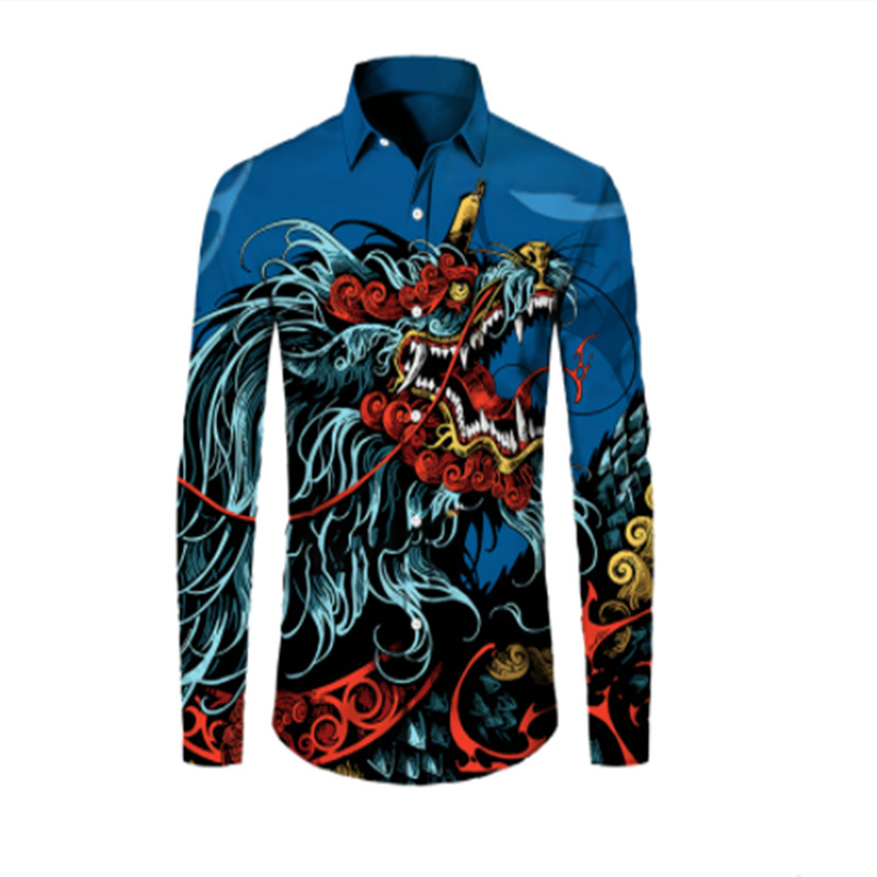 2023 크로스 보더 뉴 드래곤 3D 프린팅 봄과 여름 남성 긴팔 플라워 셔츠 패션 캐주얼 셔츠 공장 직판