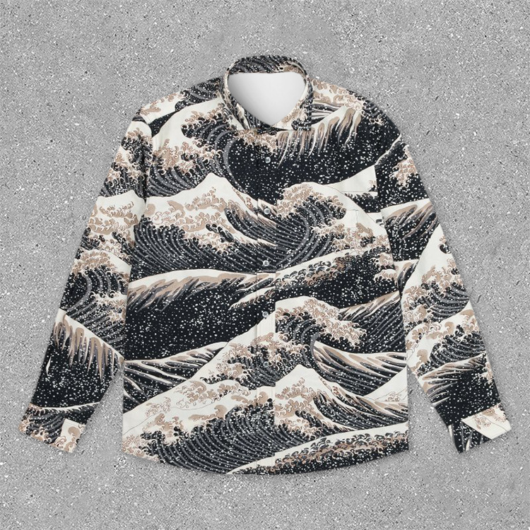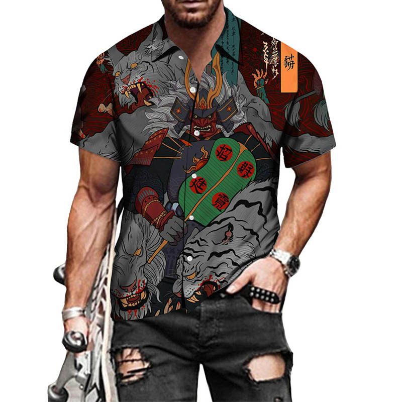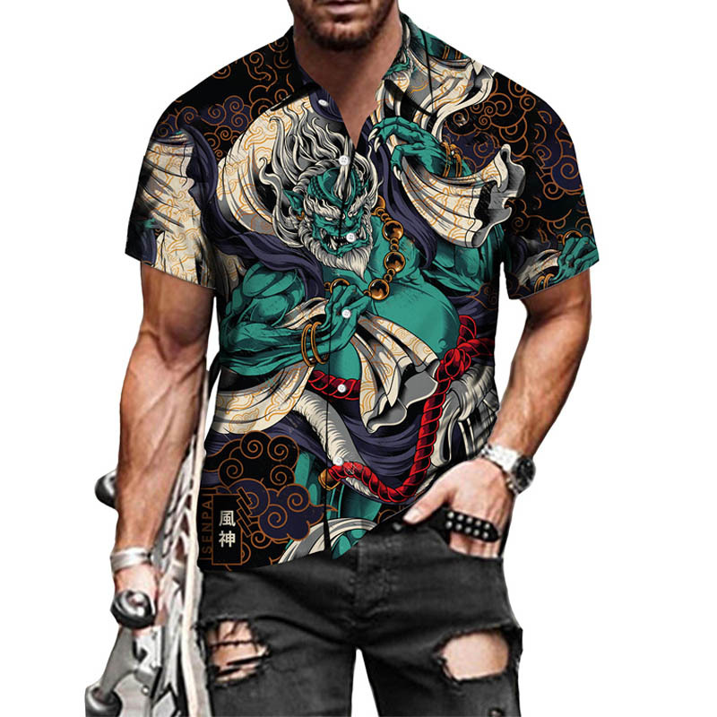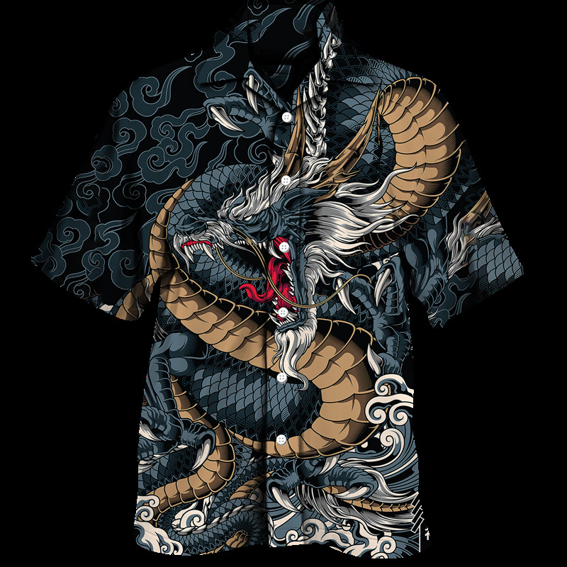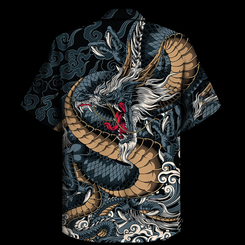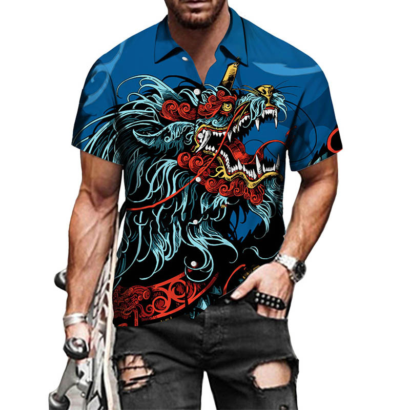 2023 크로스 보더 뉴 드래곤 3D 프린팅 봄과 여름 남성 긴팔 플라워 셔츠 패션 캐주얼 셔츠 공장 직판