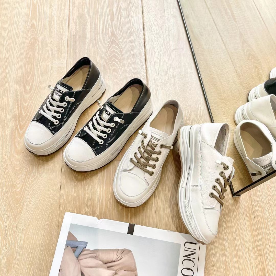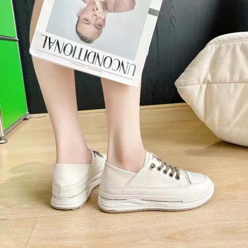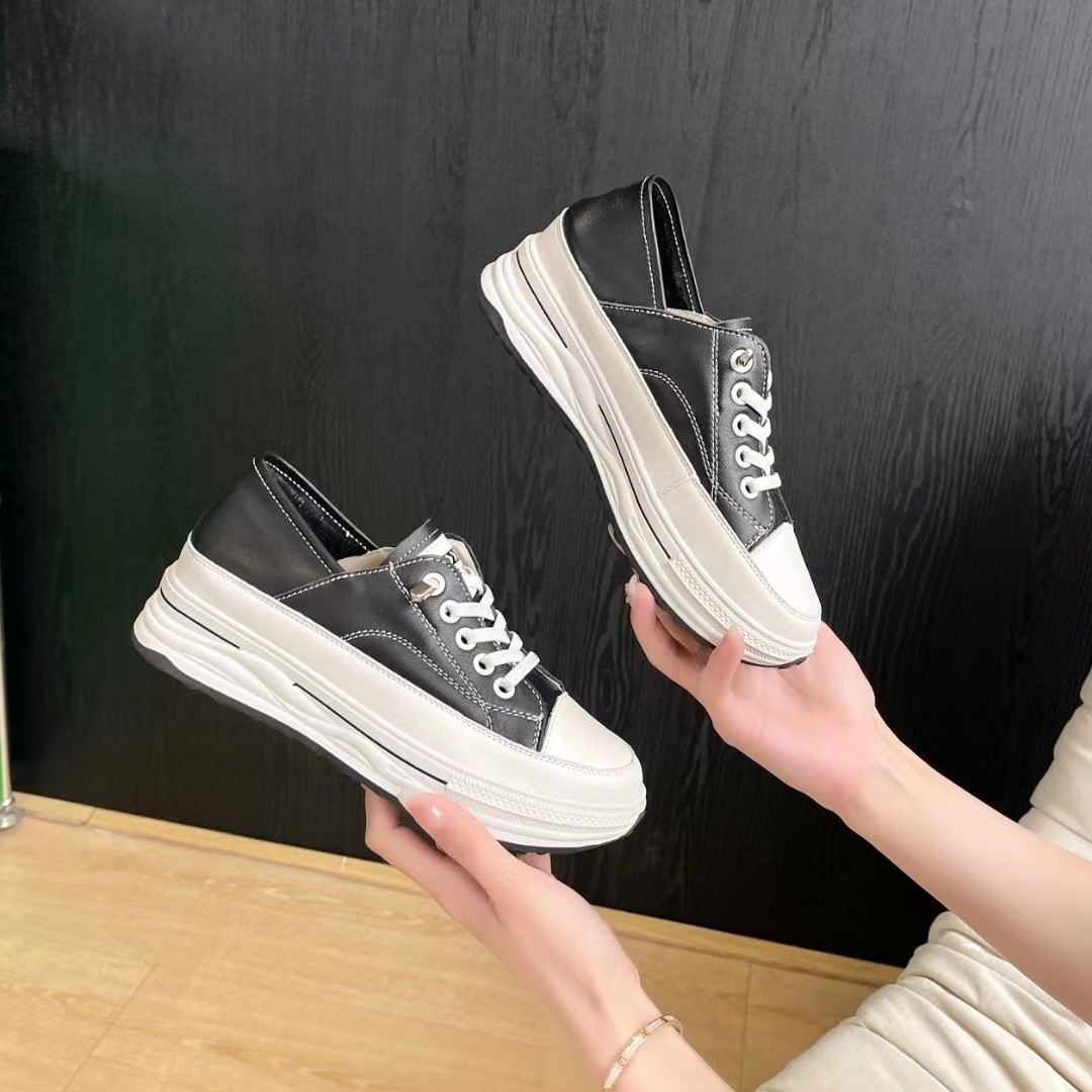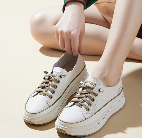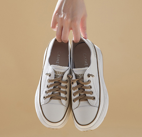 탑 레이어 소가죽 두꺼운 밑창 흰색 신발 여성용 2023 봄 새로운 편안한 다목적 가죽 통기성 스포츠 캐주얼 신발스토어 가기