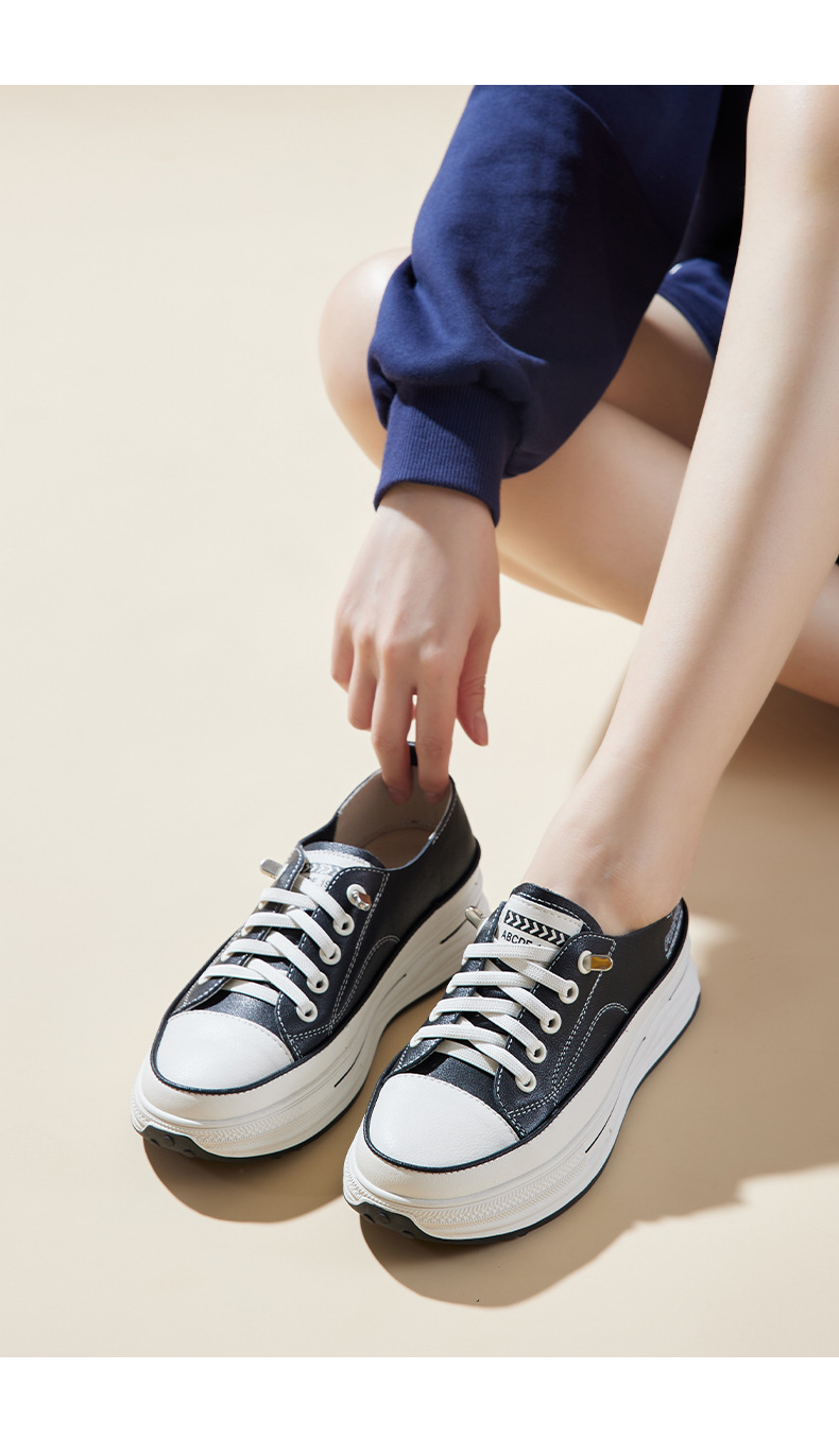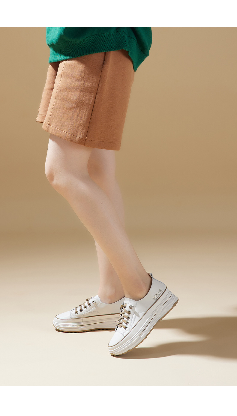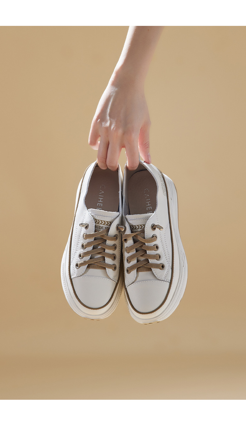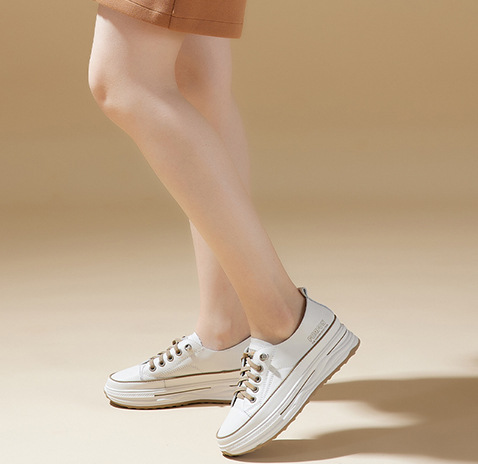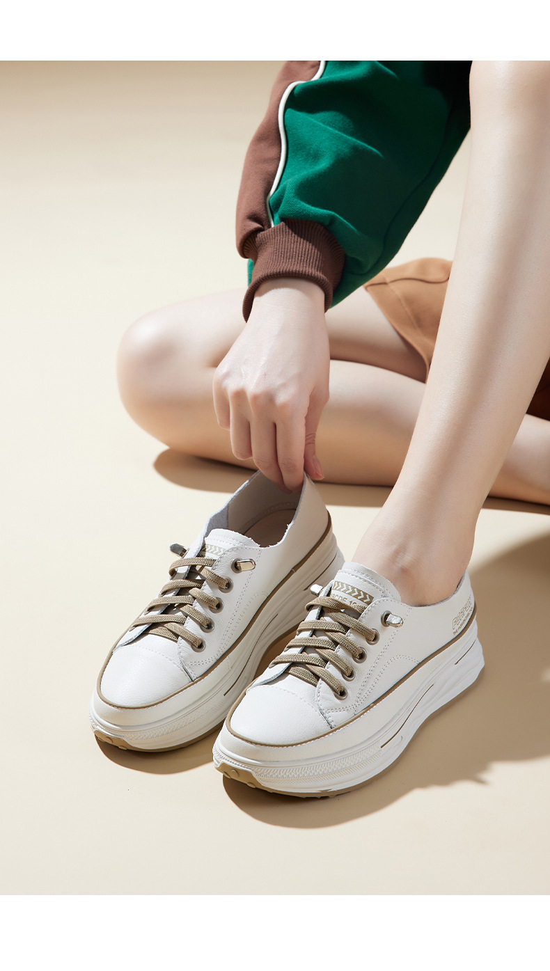 탑 레이어 소가죽 두꺼운 밑창 흰색 신발 여성용 2023 봄 새로운 편안한 다목적 가죽 통기성 스포츠 캐주얼 신발