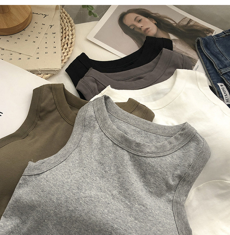 여름 짧은 I 자형 조끼 여성용 아름다운 백 원피스 가슴 패드 내부 슬림핏 랩 짧은 배꼽 노출 민소매 탑스토어 가기