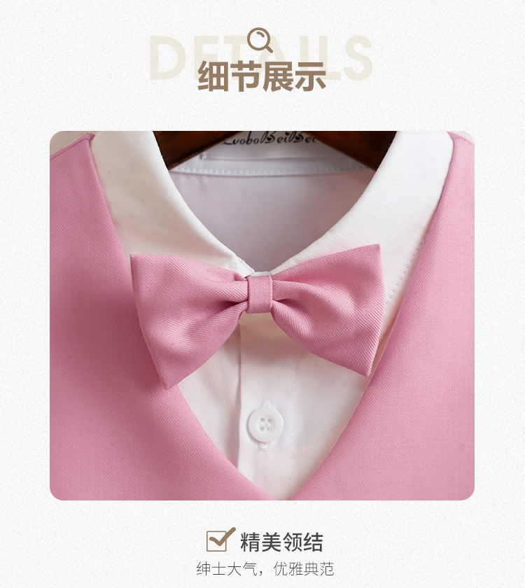 • 핑크 5 종 세트 (흰색 셔츠 + 양복 조끼 + 바지 + 나비 넥타이 + 코사지)