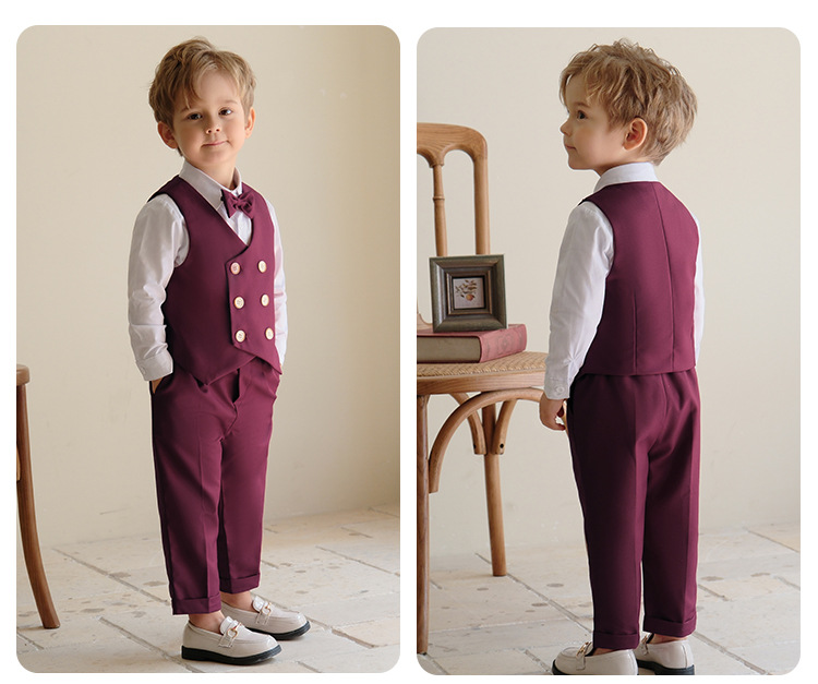 • 버건디 5 종 세트 (흰색 셔츠 + 양복 조끼 + 바지 + 나비 넥타이 + 코사지)