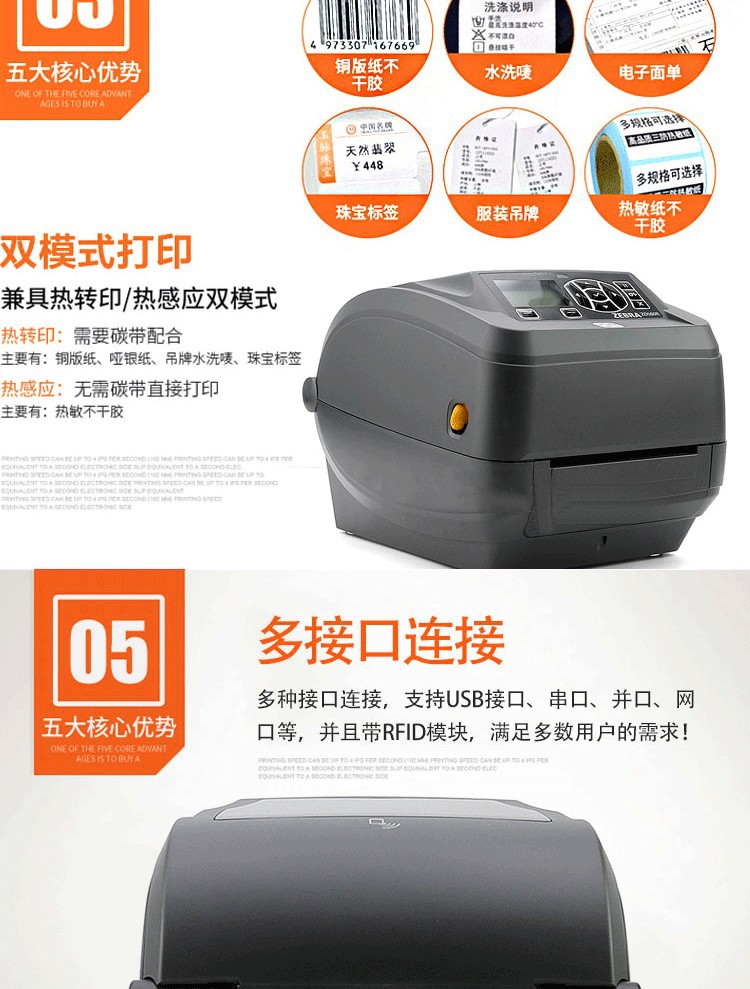 얼룩말 ZD500R 탁상용 RFID 바코드 기계 접착 라벨 기계 고정자산 프린터