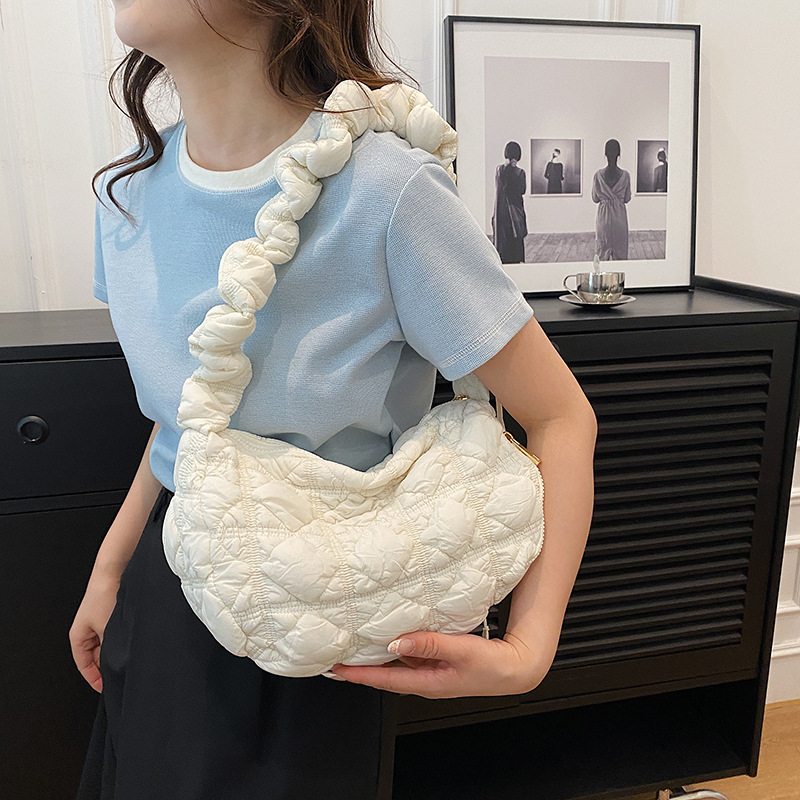 Xiaozhong All-match Cloud Bag 새로운 주름 된 대용량 자수 만두 백 드로스트링 크로스 바디 백 여성용 숄더 핸드백스토어 가기