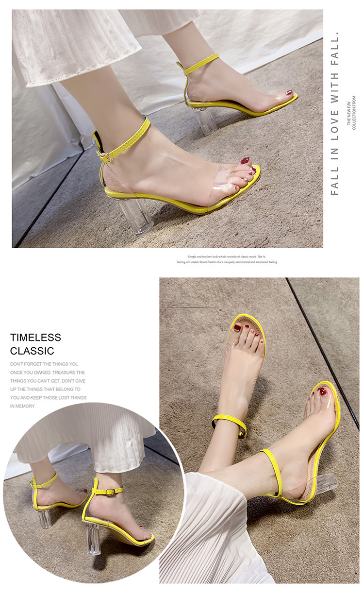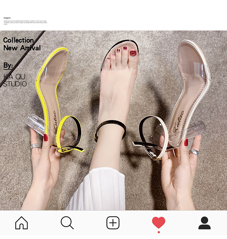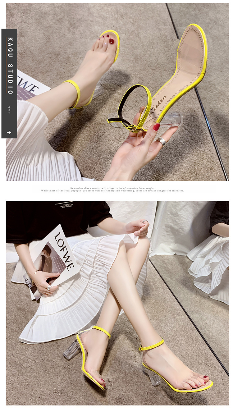 2020 여름 새로운 여성의 투명 샌들 크리스탈 한국 스타일 캐주얼 샌들 두꺼운 굽 여성 하이힐 여성 신발스토어 가기