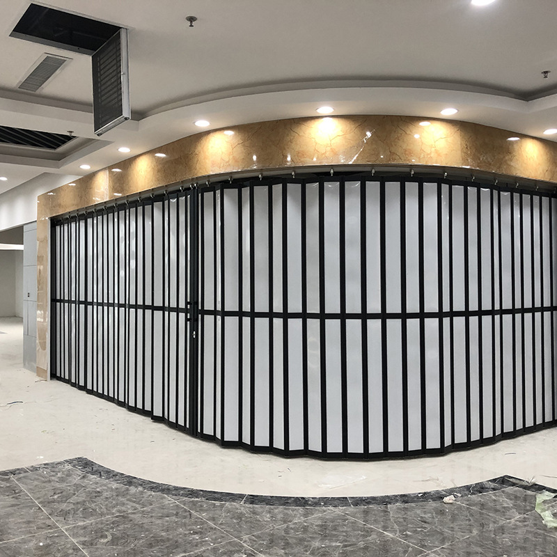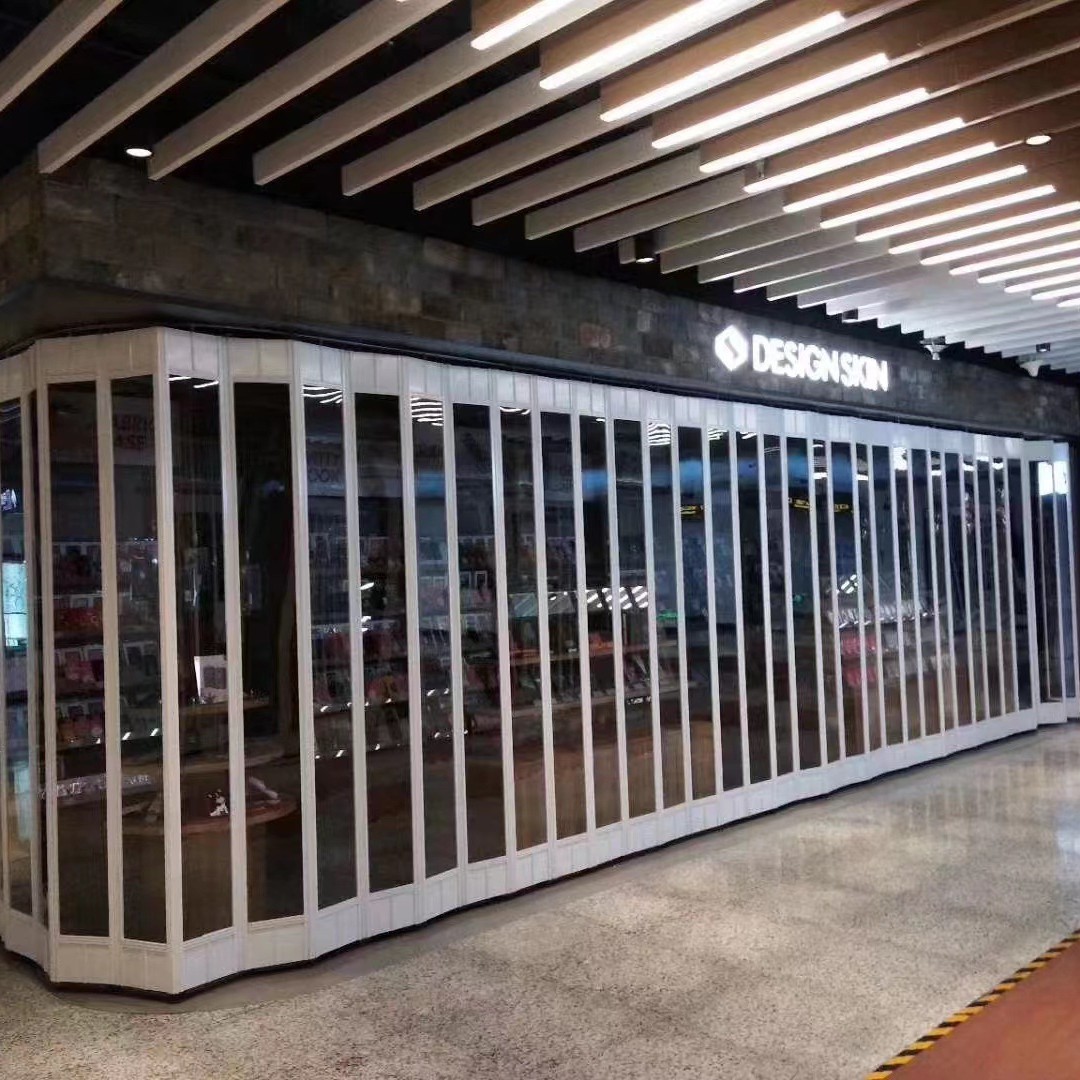 알루미늄 합금 접이식 문 도매 자동차 미용점 쇼핑몰 아크 푸시 보이지 않는 파티션 사이드 롤 크리스탈 슬라이딩 도어스토어 가기