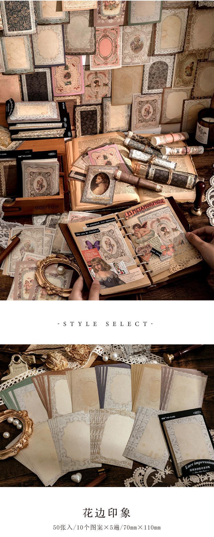 모 잉크 재료 종이 레이스 노트 시리즈 복고풍 부드러운 레이스 손 계정 기본 장식 재료 50