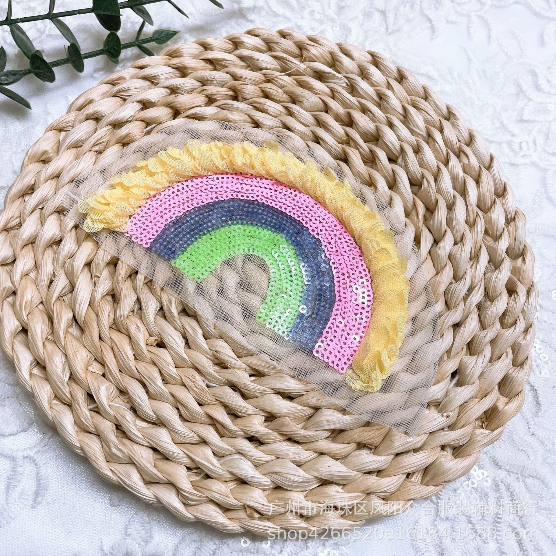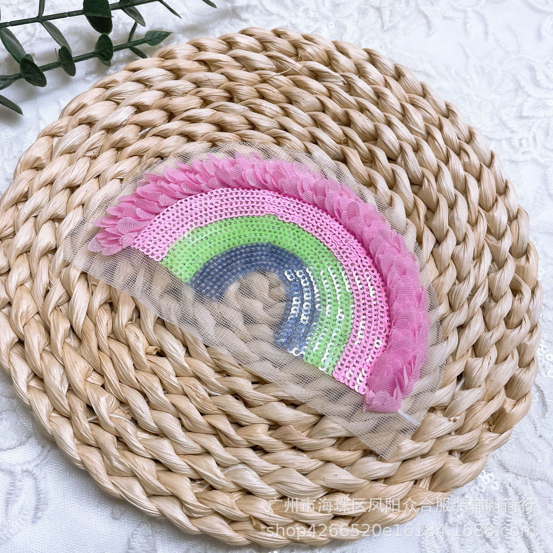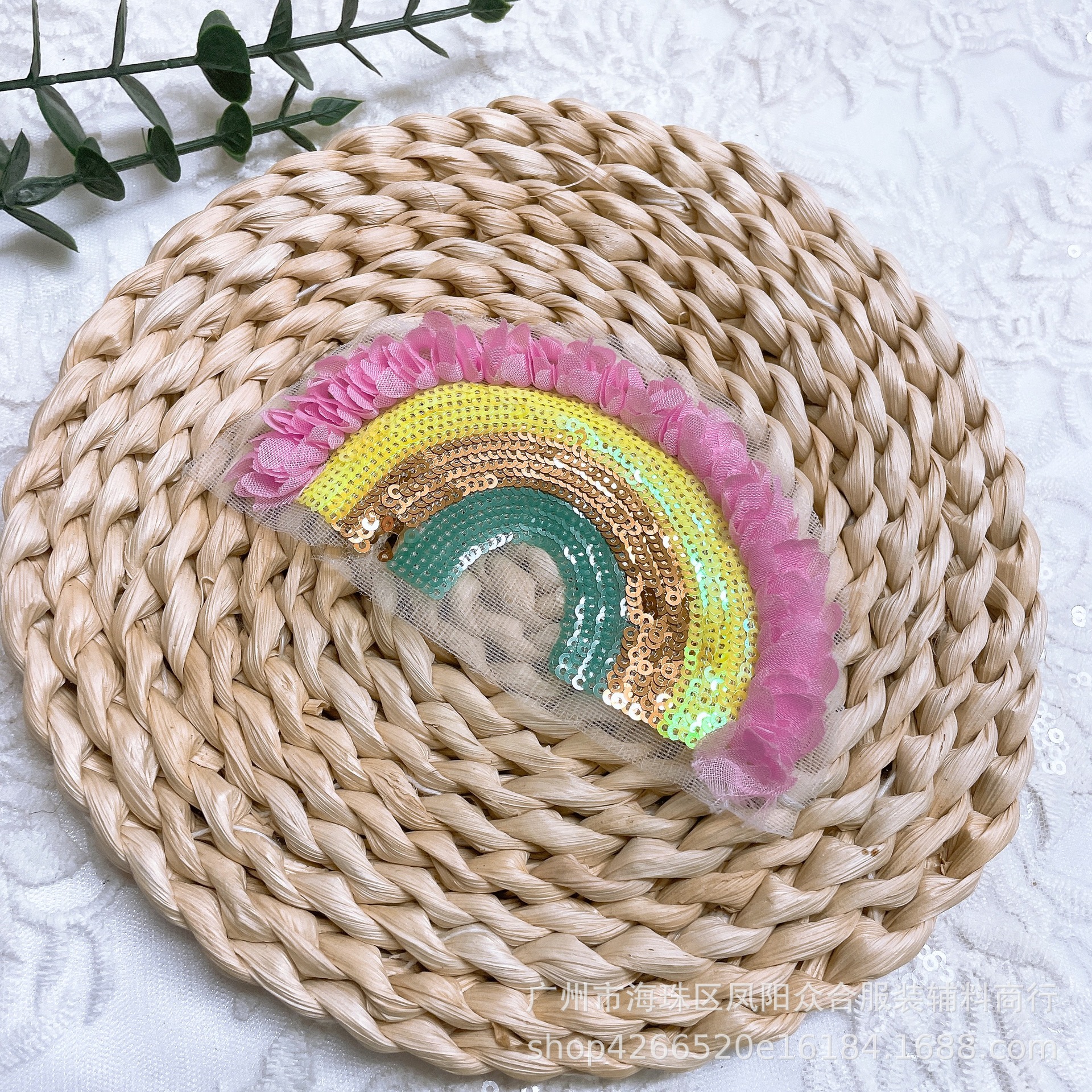 공장 직공급 레인보우 쉬폰 비드 리본 자수 패치 의류 아동복 티셔츠 액세서리 패치 패치 액세서리스토어 가기
