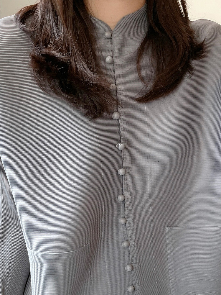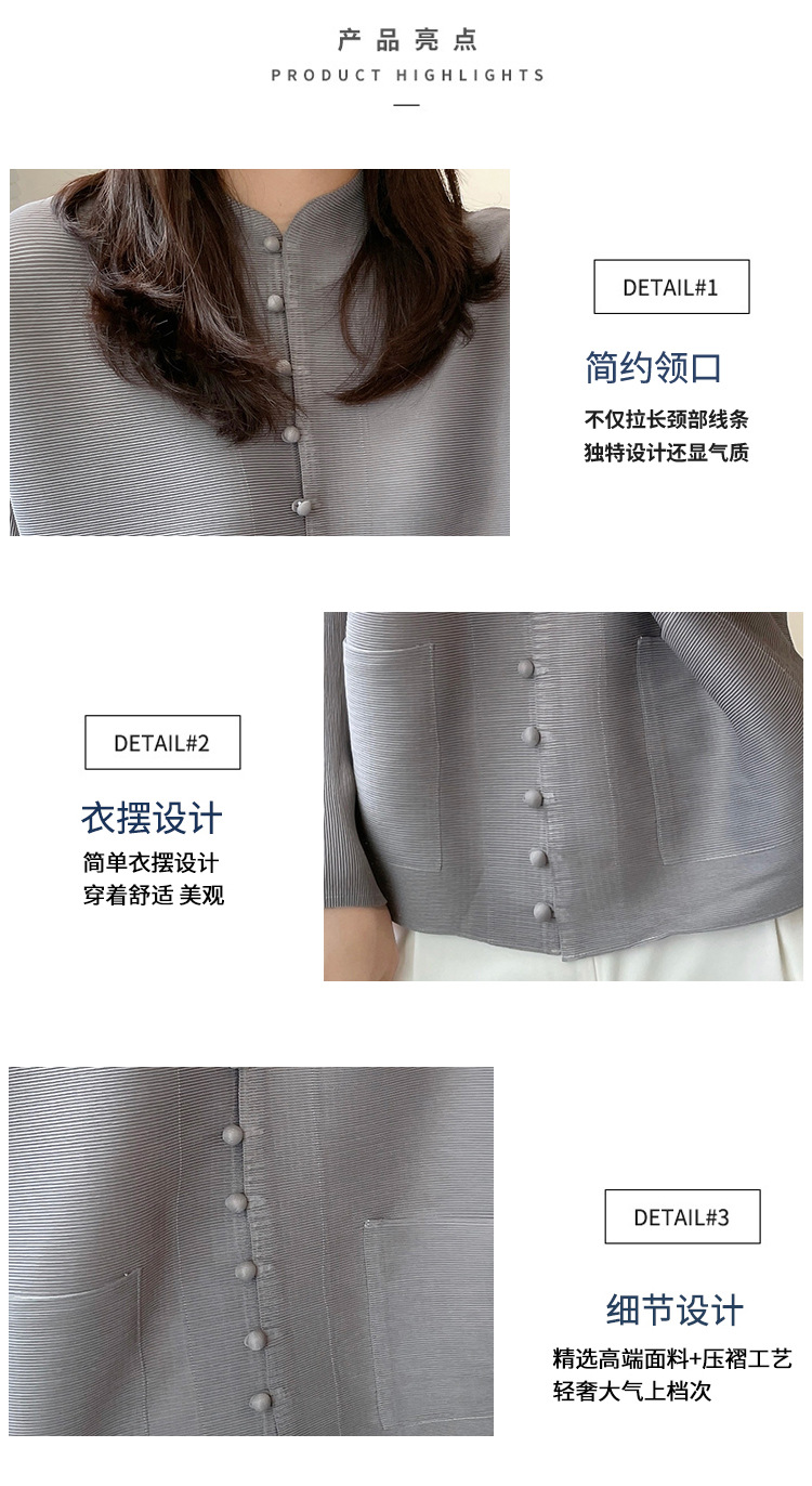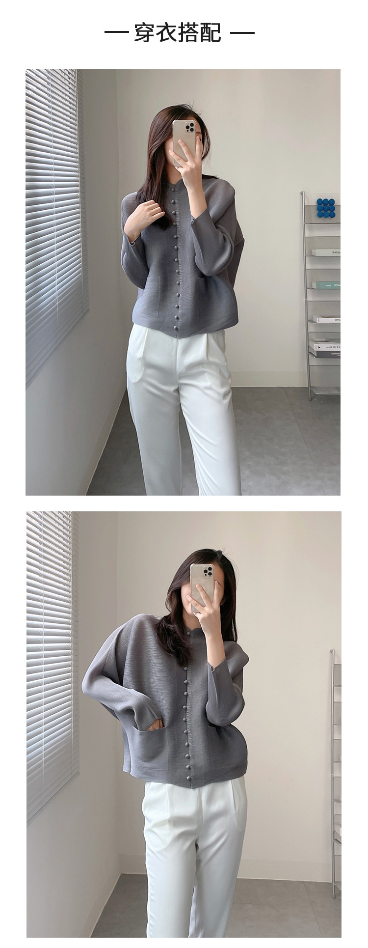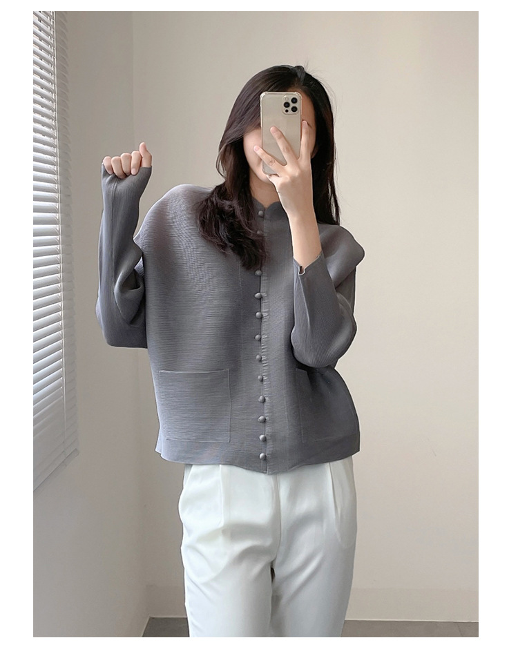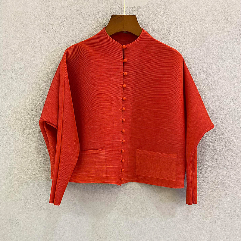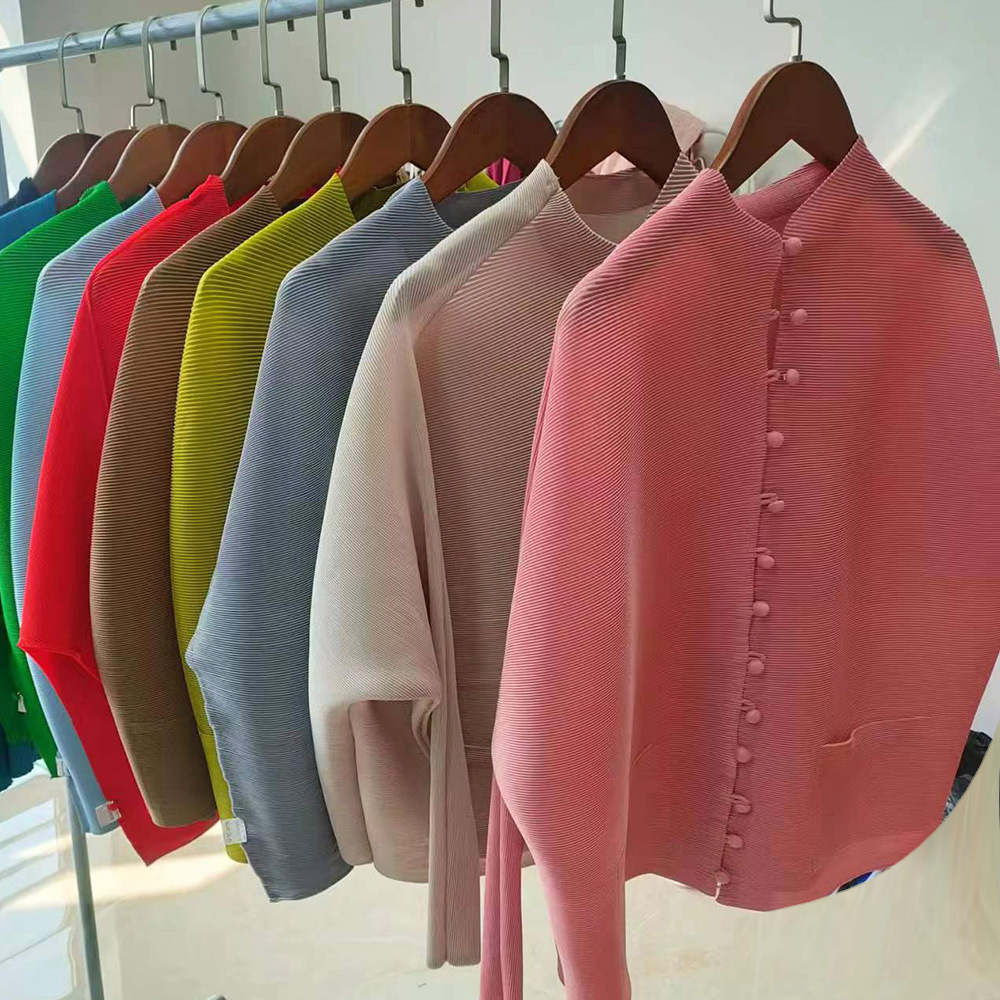 미야케 플리츠 셔츠 탑 여성 캐주얼 틈새 디자인 감각 박쥐 슬리브 느슨한 플러스 사이즈 슬리밍 셔츠 짧은 코트