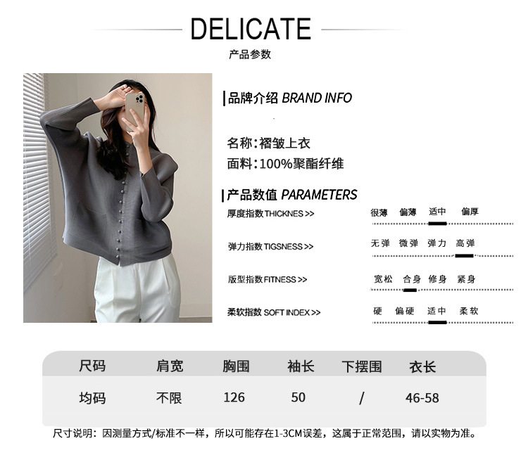 미야케 플리츠 셔츠 탑 여성 캐주얼 틈새 디자인 감각 박쥐 슬리브 느슨한 플러스 사이즈 슬리밍 셔츠 짧은 코트스토어 가기