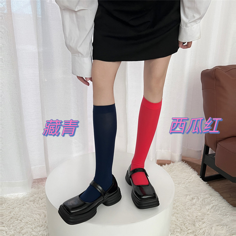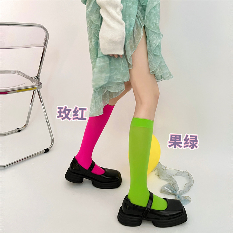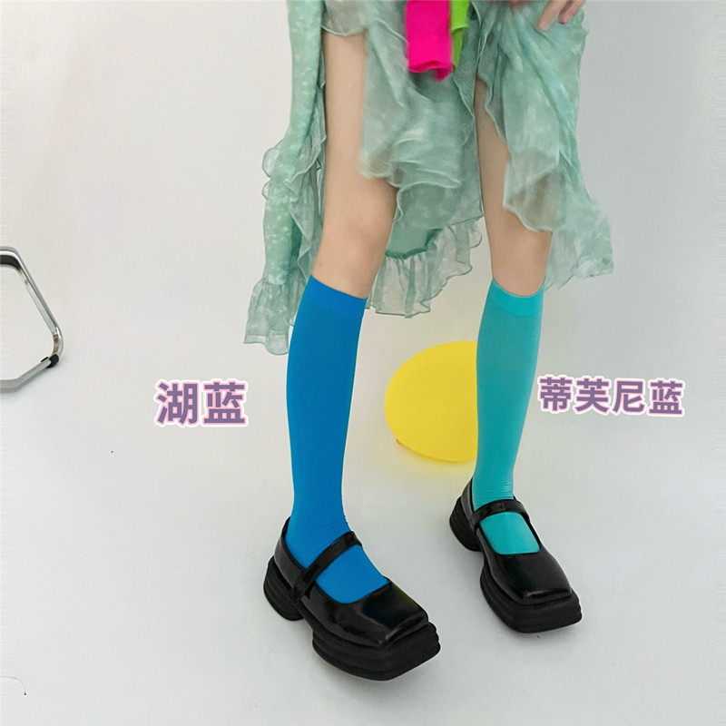 봄과 여름 jk 벨벳 고층 송아지 양말 여름 슬리밍 얇은 사탕 색상 핑크 트렌디 모든 일치 일본 한국 스타일 아기스토어 가기